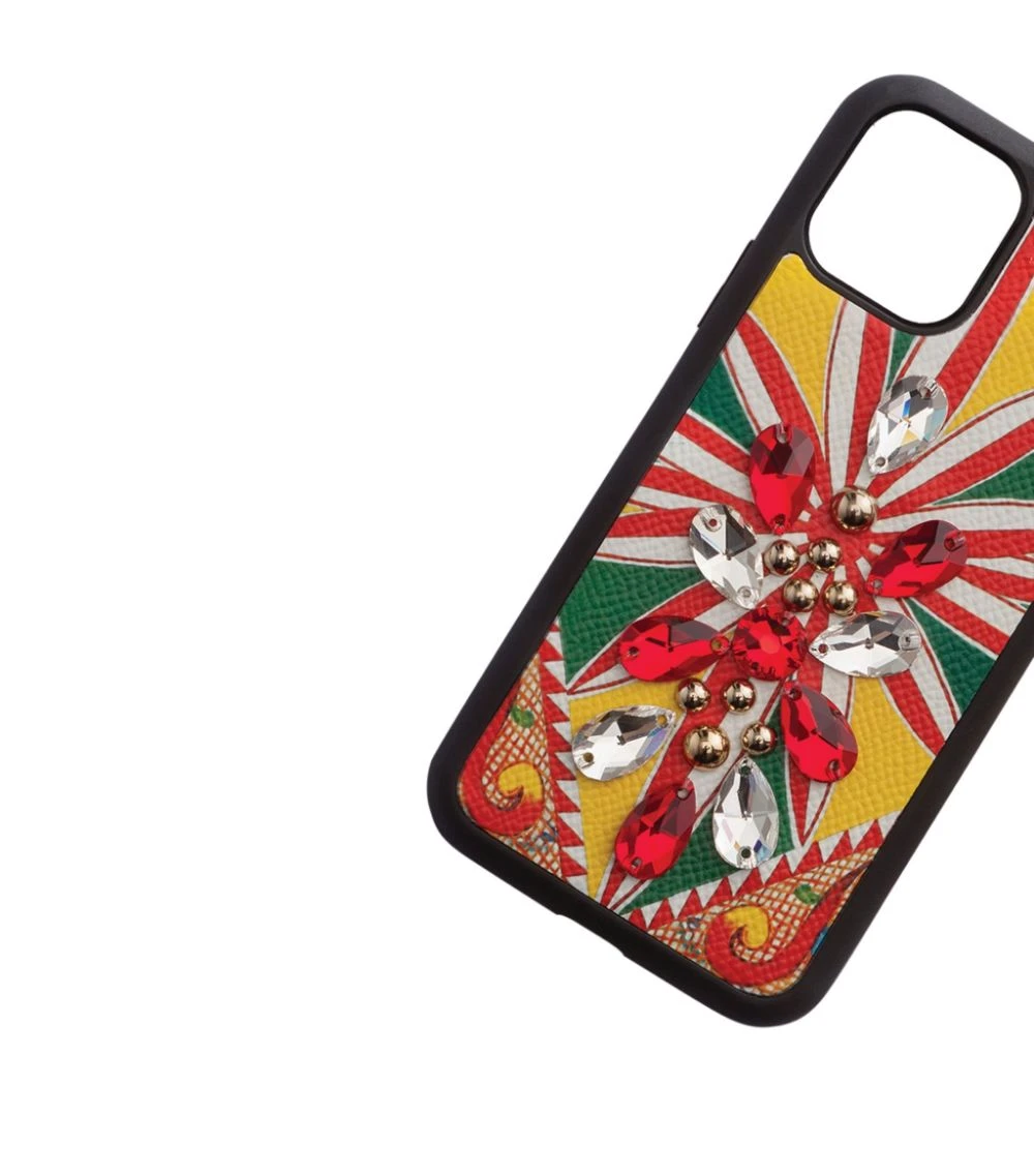 Keep your iPhone 11 Pro safe with this vibrant Dolce & Gabbana case. Imagined in the brand’s iconic Carretto print, the colourful setting has been enhanced by rhinestone embellishments which sparkle like the Sicilian sun. This is the perfect way to upgrade your accessories portfolio and your iPhone all with one purchase.