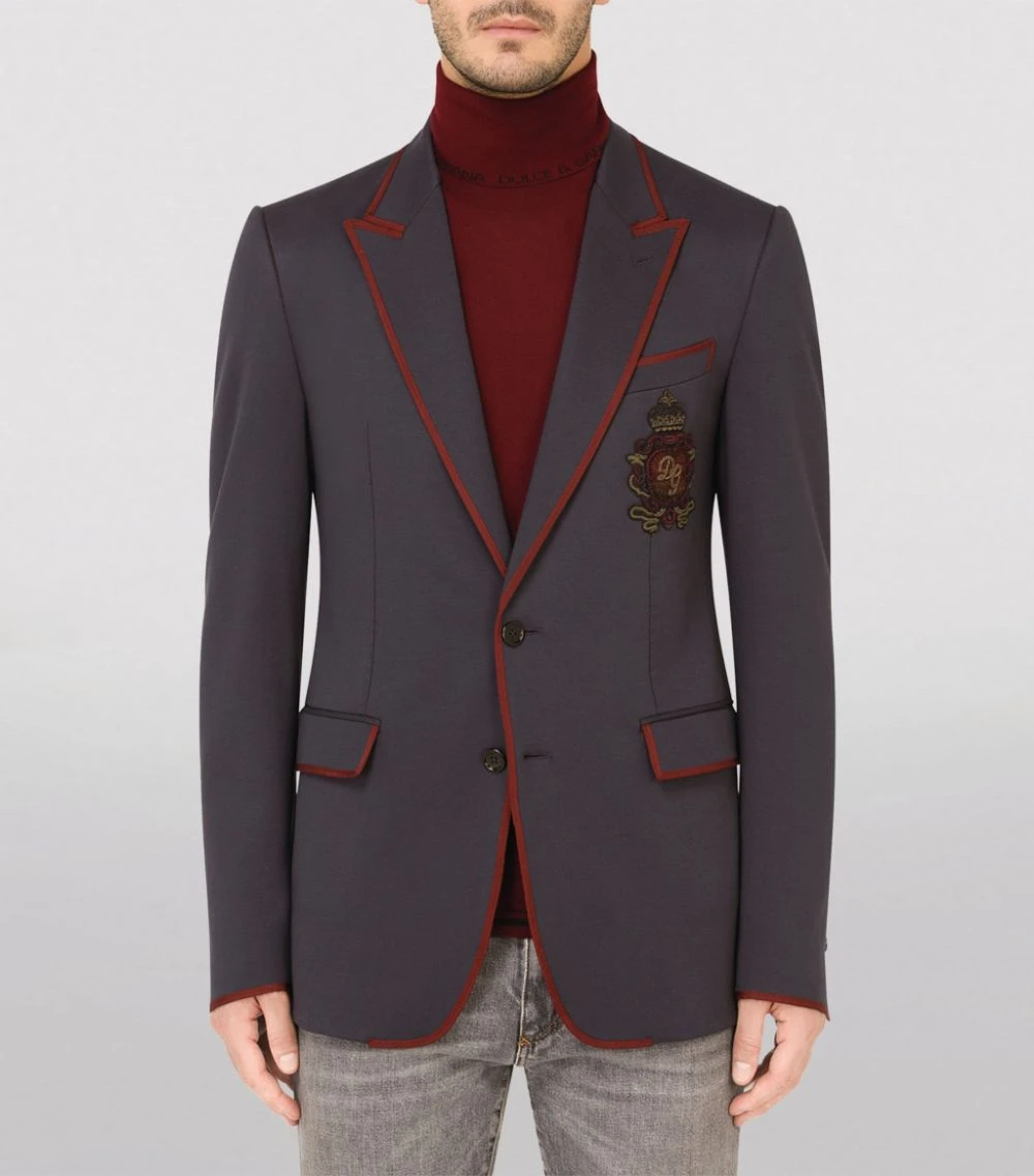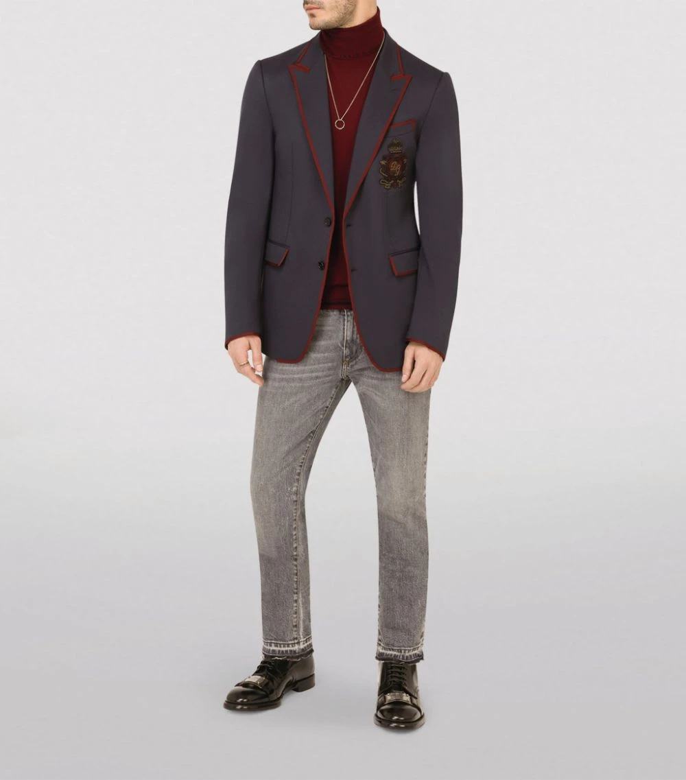 A collegiate air surrounds this jacket – it’s the result of considered design on behalf of Dolce & Gabbana. The Italian label evokes nostalgia with this impeccable piece; its contrasting trims, tailored cut and heraldic logo patch represent a subtle nod to clubs and colleges, but one seen through the lens of modern sophistication. The beauty of these casual leanings, however, is that this piece partners seamlessly with more relaxed takes on formalwear.