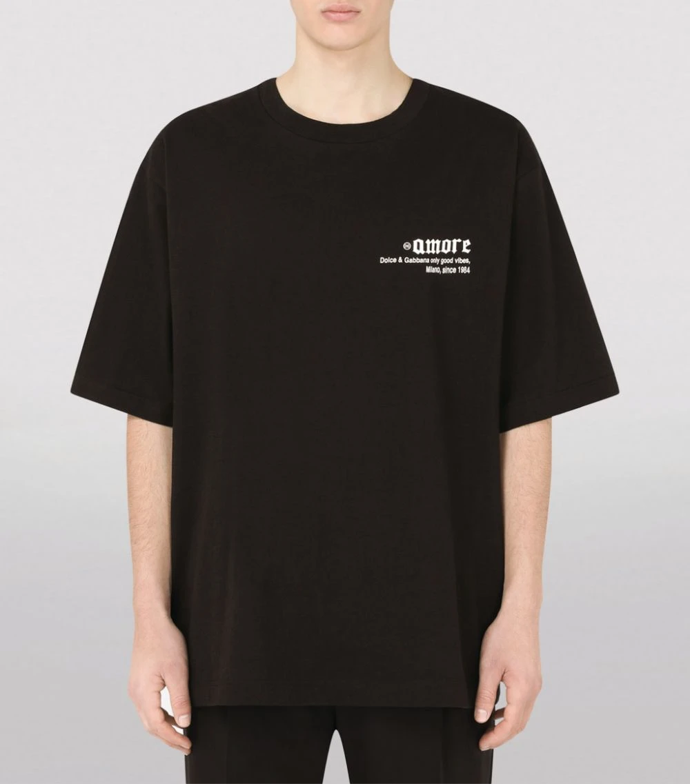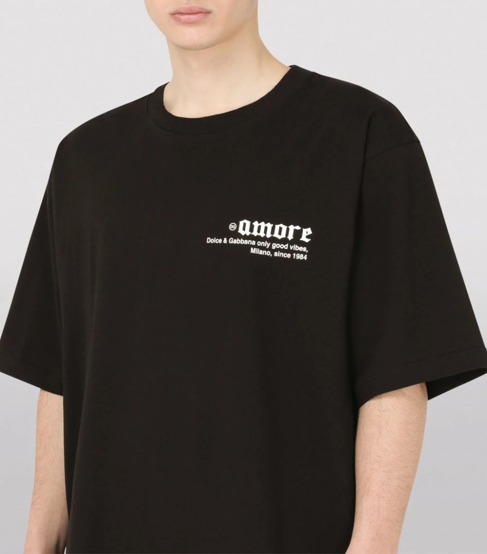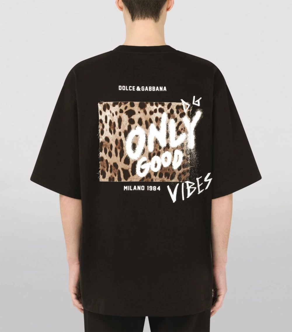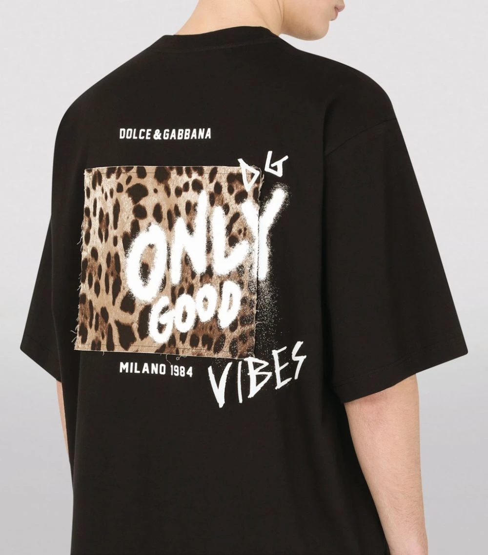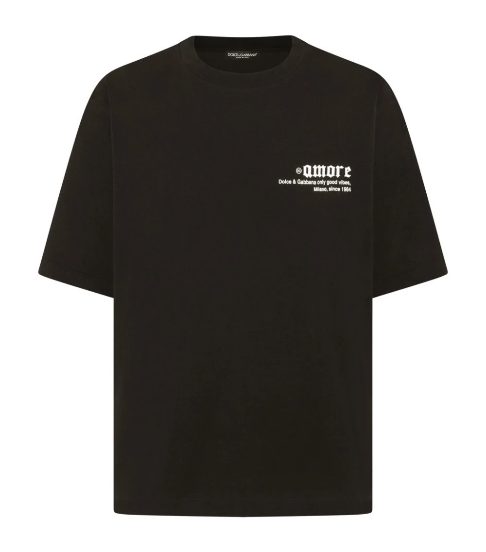 This T-shirt from Dolce & Gabbana is part of the Leopardo collection, designed in Italy, and crafted from soft cotton for a sumptuous feel. Accentuated by way of the House’s logo on the chest under the word Amore, it sees the slogan ONLY GOOD VIBES on the reverse – perfect for adding an air of nonchalance to your favourite denim pieces.