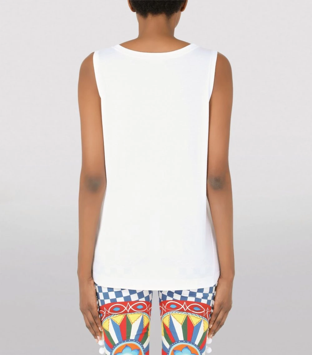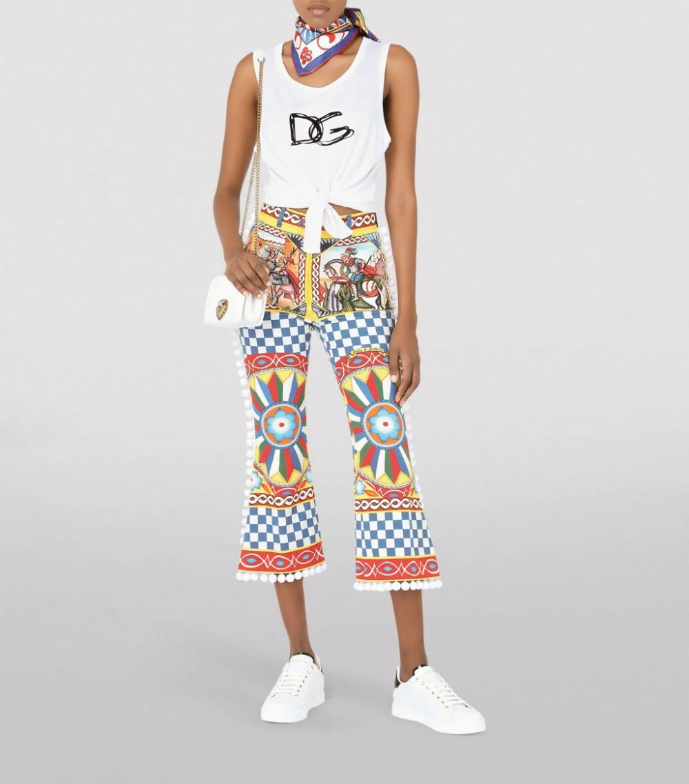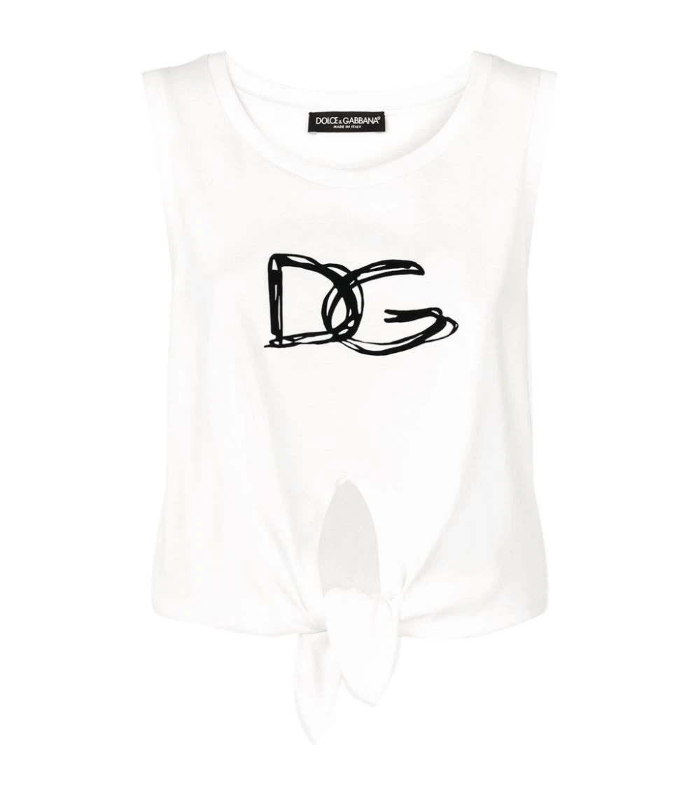 Ensure your love for luxury is heard far and wide with this cotton top from Dolce & Gabbana. In accordance with the fashion house’s signature tongue-in-cheek attitude, the design features a scribbled representation of the label’s logo, standing tall against the neutral backdrop. Balance the cropped silhouette with any high-rise partner you desire.