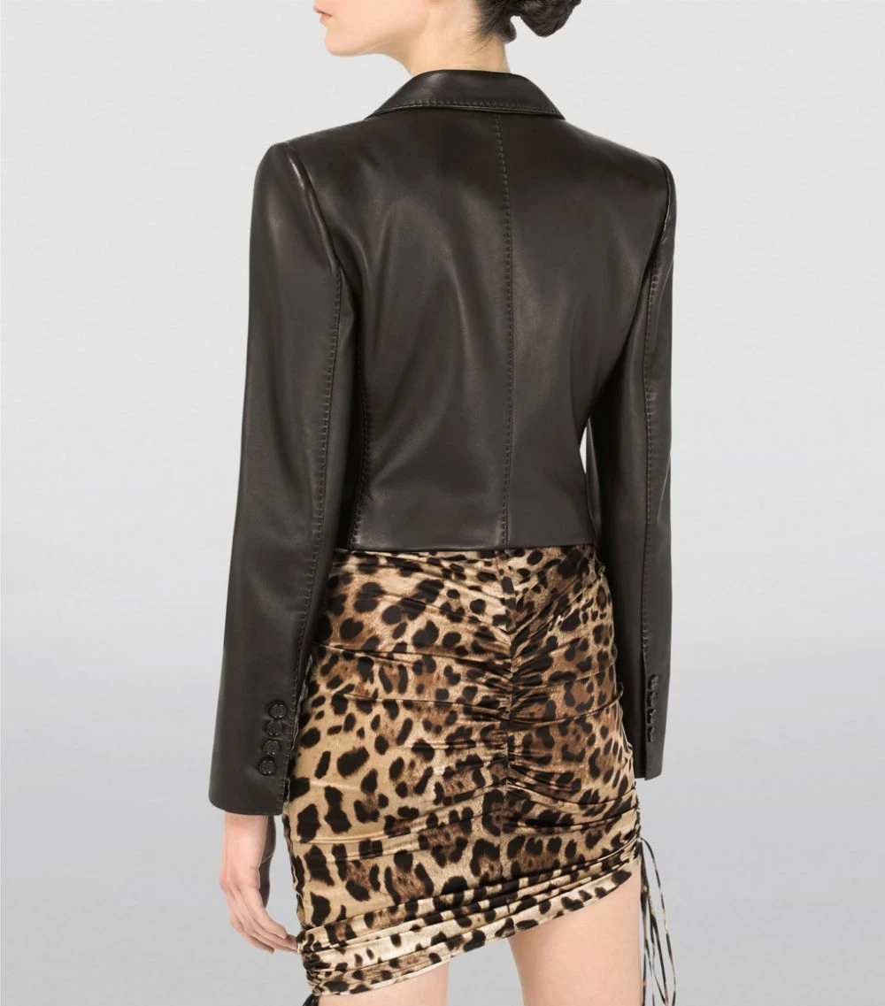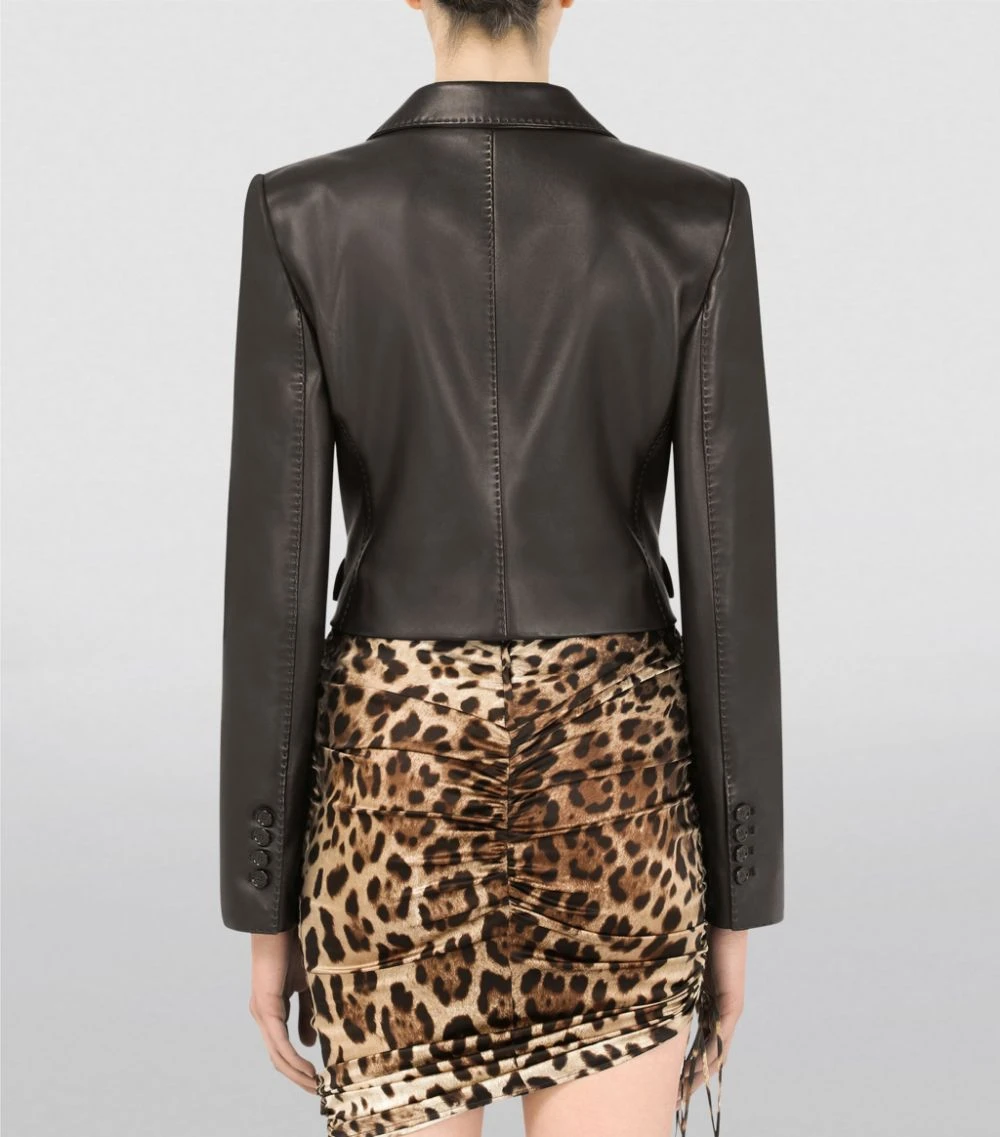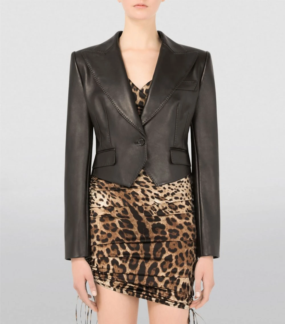 A pivotal style to the Dolce & Gabbana aesthetic, this leather blazer reimagines the classic tailored staple with a cropped silhouette.The sleek,straigh-fitting profile is effortlessly minimal to leave the spotlight to its key features: oversized peak lapels and strong shoulders which create an air of modern effortlessness.