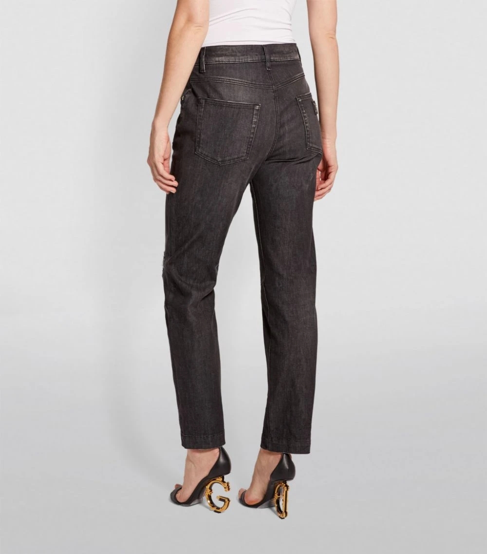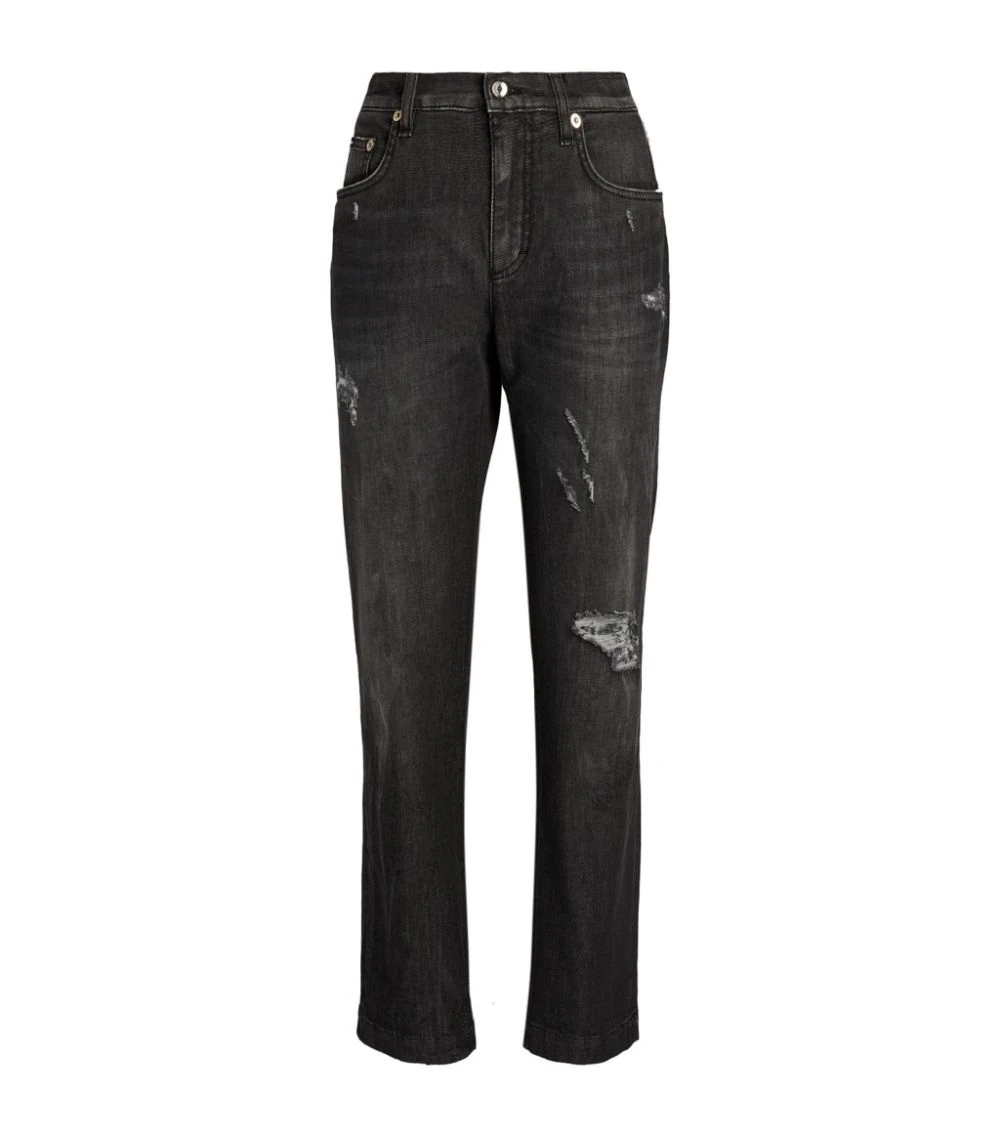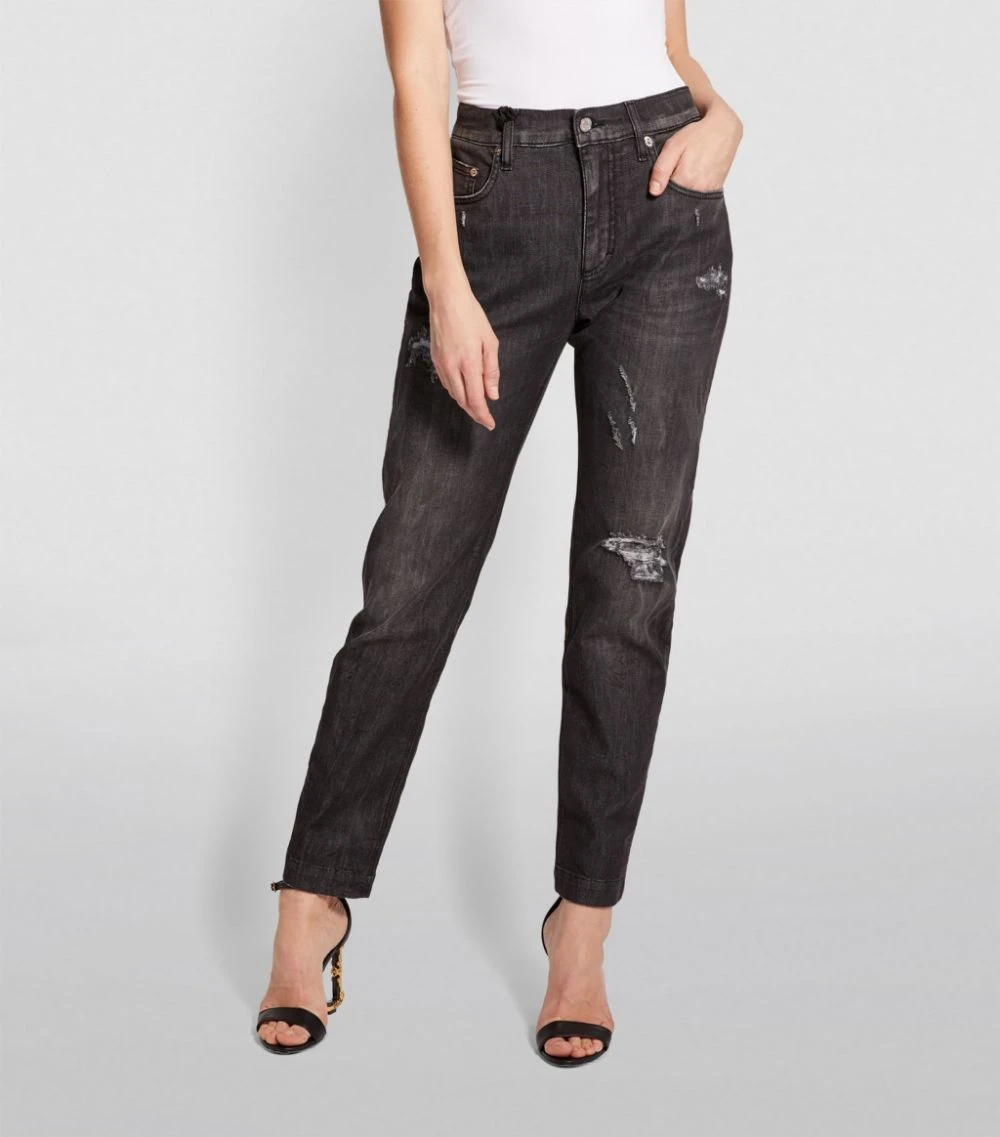Welcome Dolce & Gabbana to your denim edit with its take on the wardrobe staple, boyfriend jeans. Washed for a vintage effect, these trousers feature frayed patches for a lived-in and loved effect, starting their life as they mean to go on. Pair with high-tops for the ultimate off-duty look.