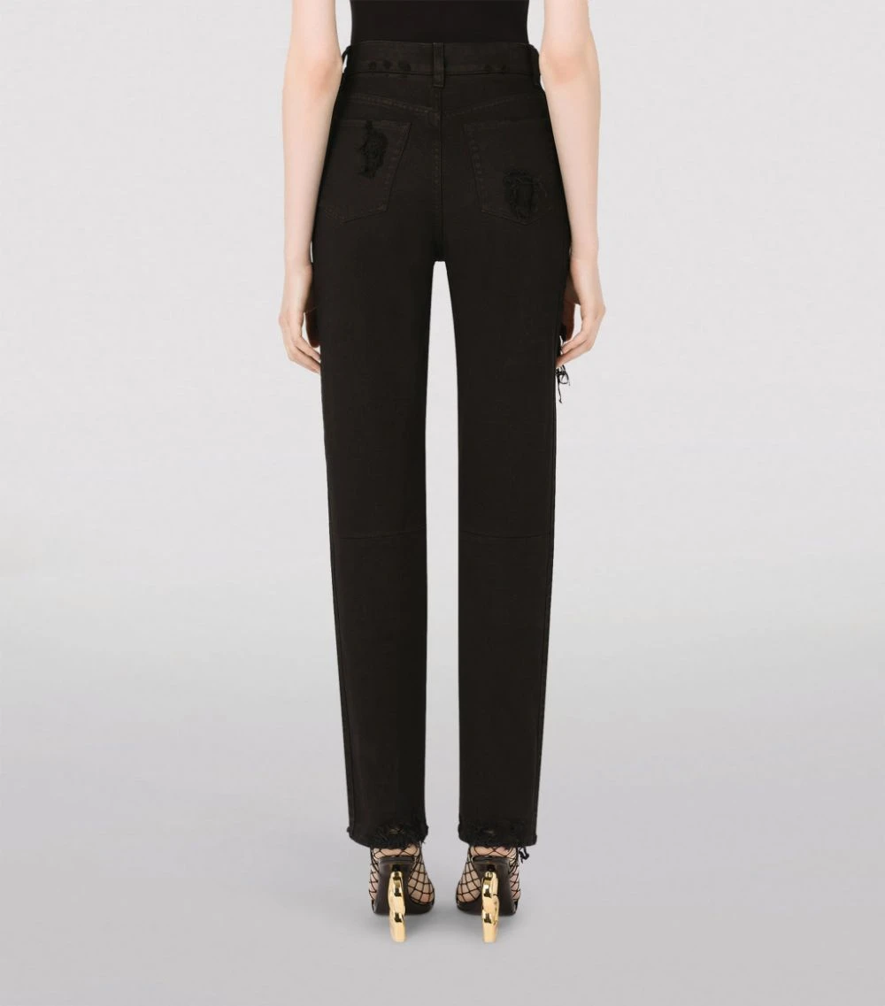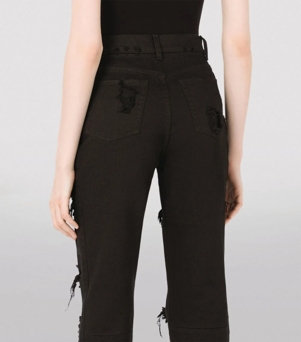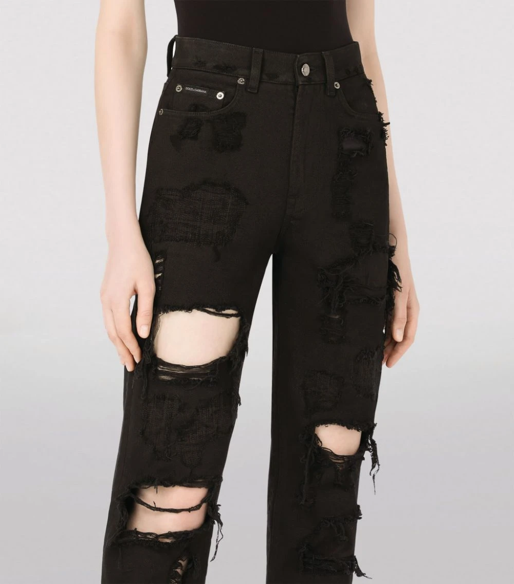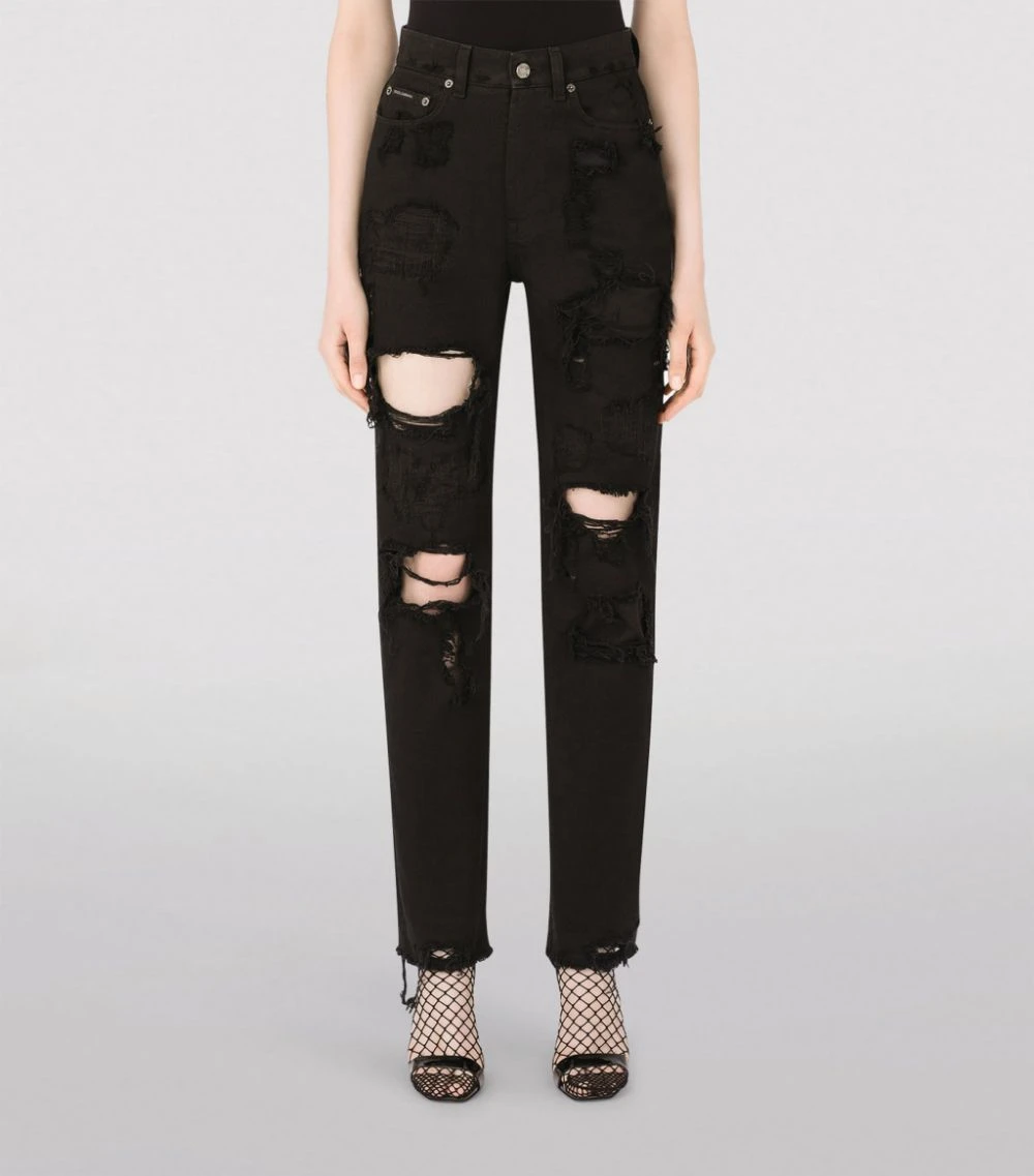 Finding new ways to inject drama into your contemporary wardrobe, Dolce & Gabbana turns to your denim edit with these distressed jeans. Washed for a vintage effect, this cotton pair features frayed patches for a lived-in and loved effect that ensures it starts its life as it means to go on.