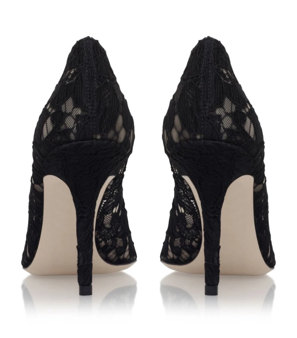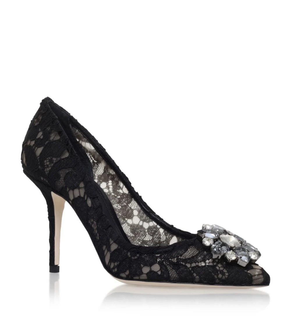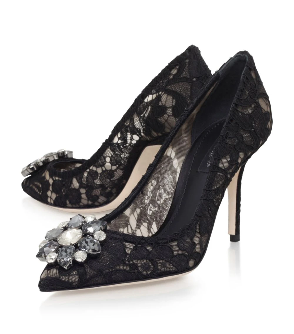 Add a sparkling touch of refinement to your shoe collection courtesy of Dolce & Gabbana’s Rosa pump. Crafted in Italy from intricate floral lace, the stiletto shoe bears a sharply pointed toe adorned with an oversized crystal embellishment. Feminine and sophisticated, slip them on with a ladylike dress for elegant charm.