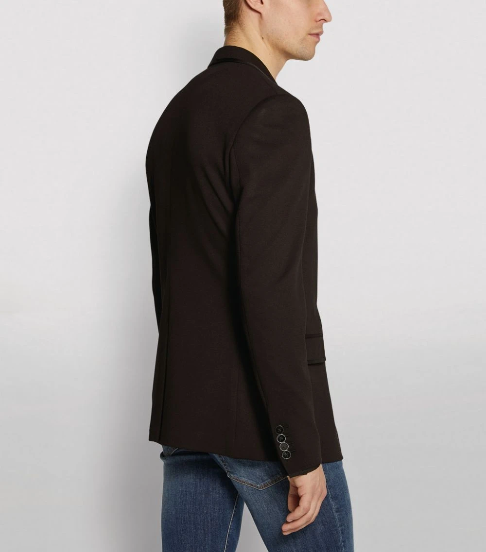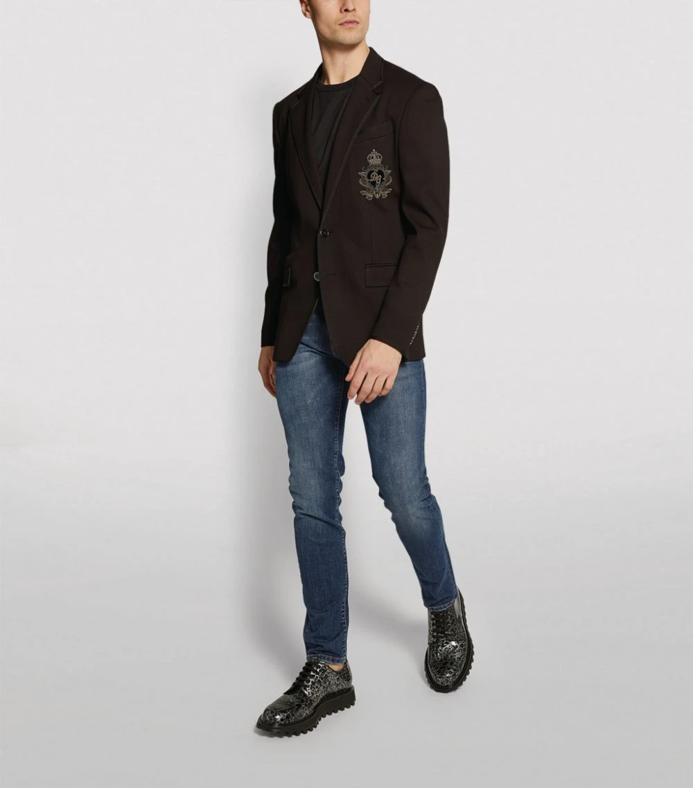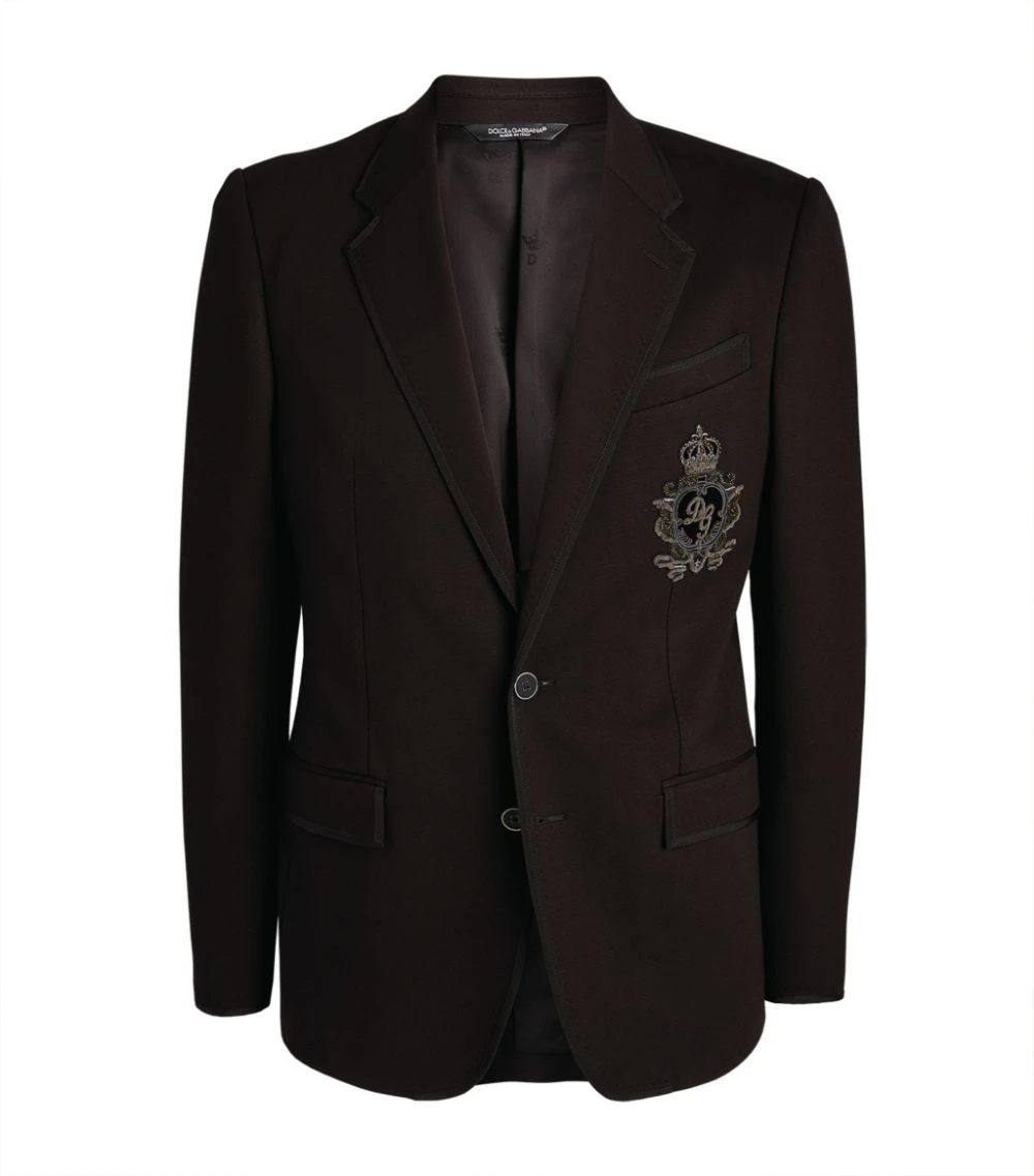 Allow the sartorial expertise of Dolce & Gabbana to accompany you on evening soirées through this tailored blazer. The super-soft silhouette offers subtle stretch for all-night comfort, while the House’s signature touch can be found by way of an embroidered logo motif where you’d traditionally find a chest pocket.