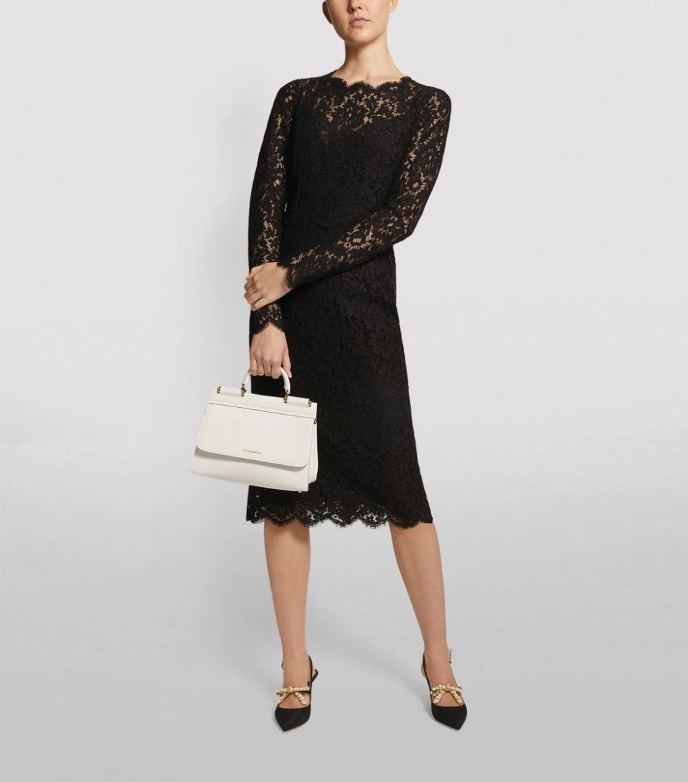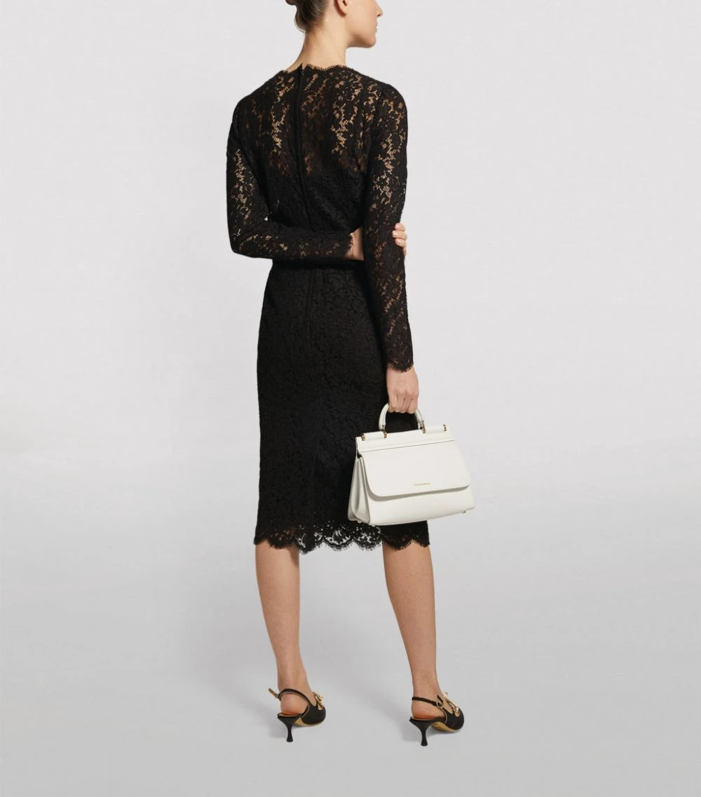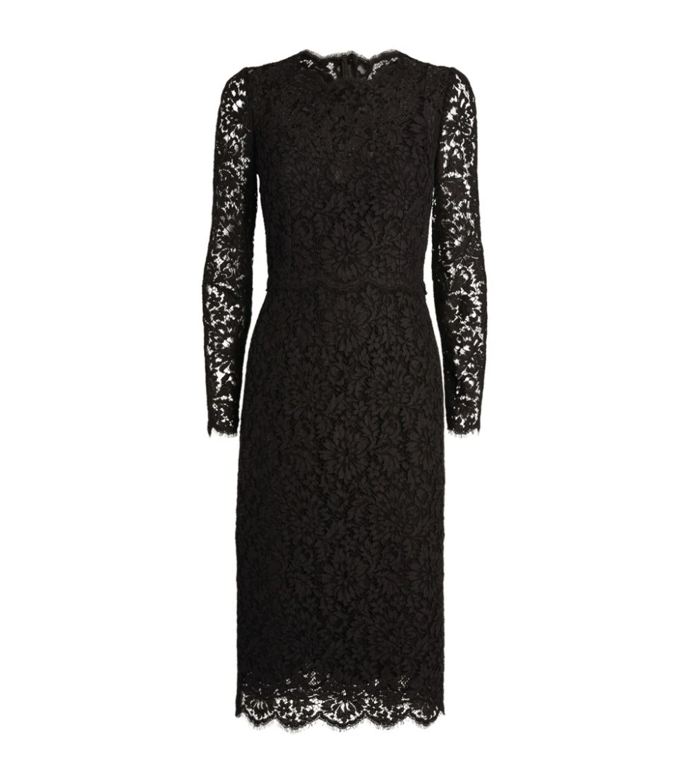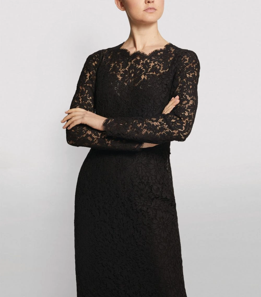Never failing to deliver undeniably feminine pieces, Dolce & Gabbana presents this long-sleeved lace dress. Imagined in a midi length – perfect for corporate events as well as evening plans – the intricate floral design is complemented by eyelash trims to the neckline, cuffs and hem.