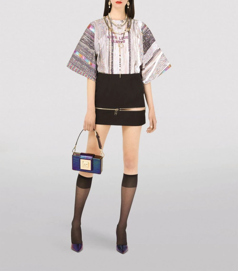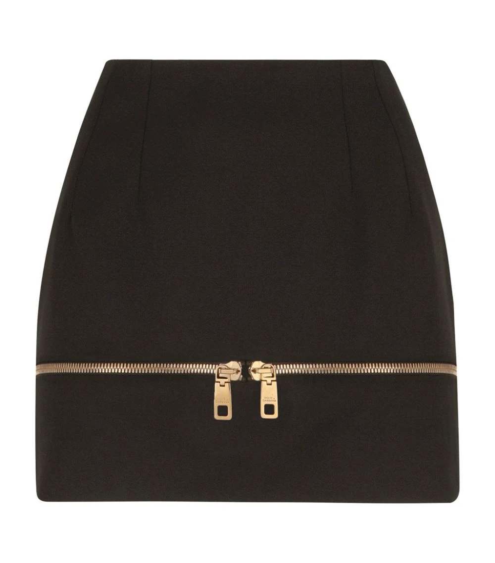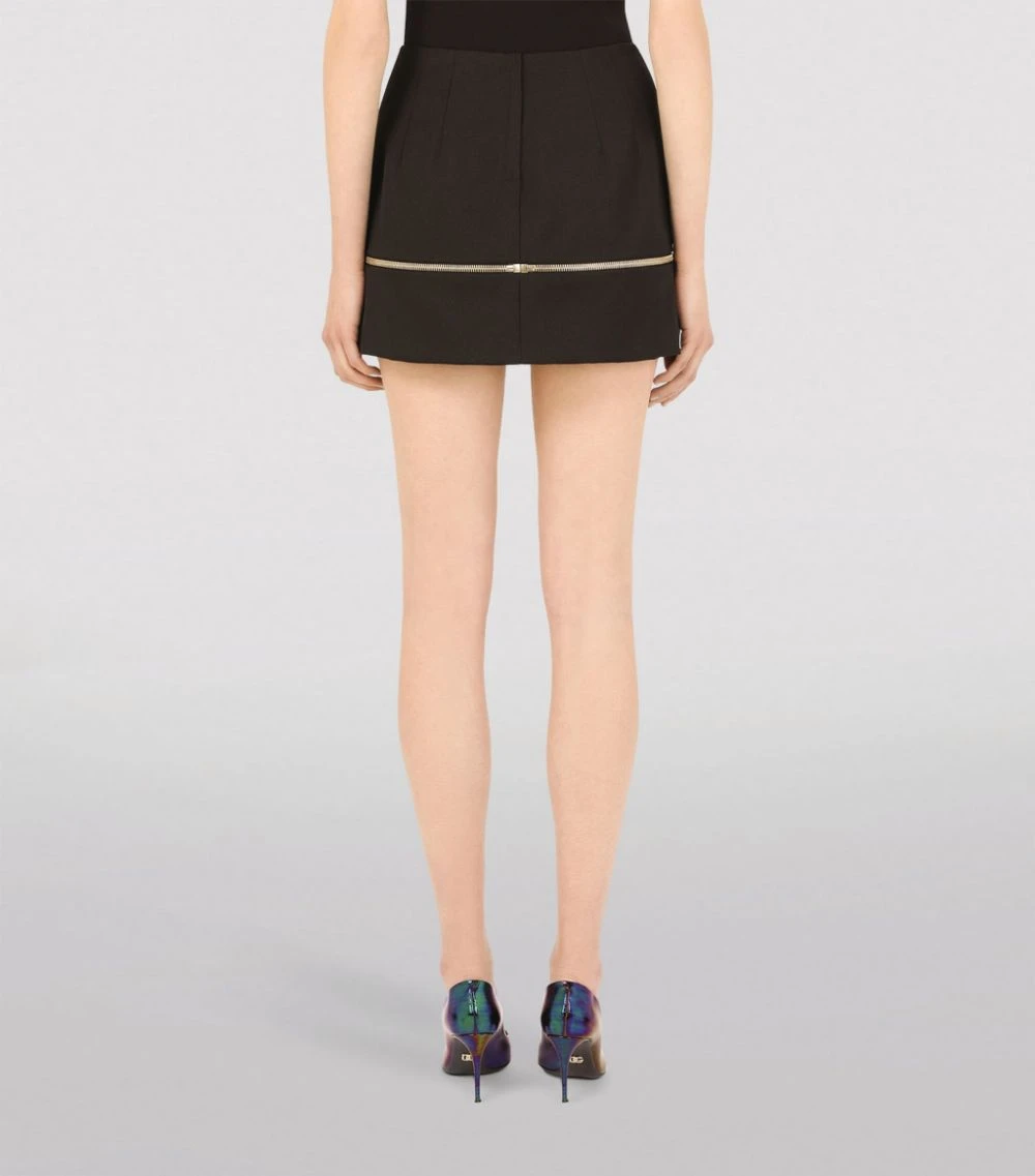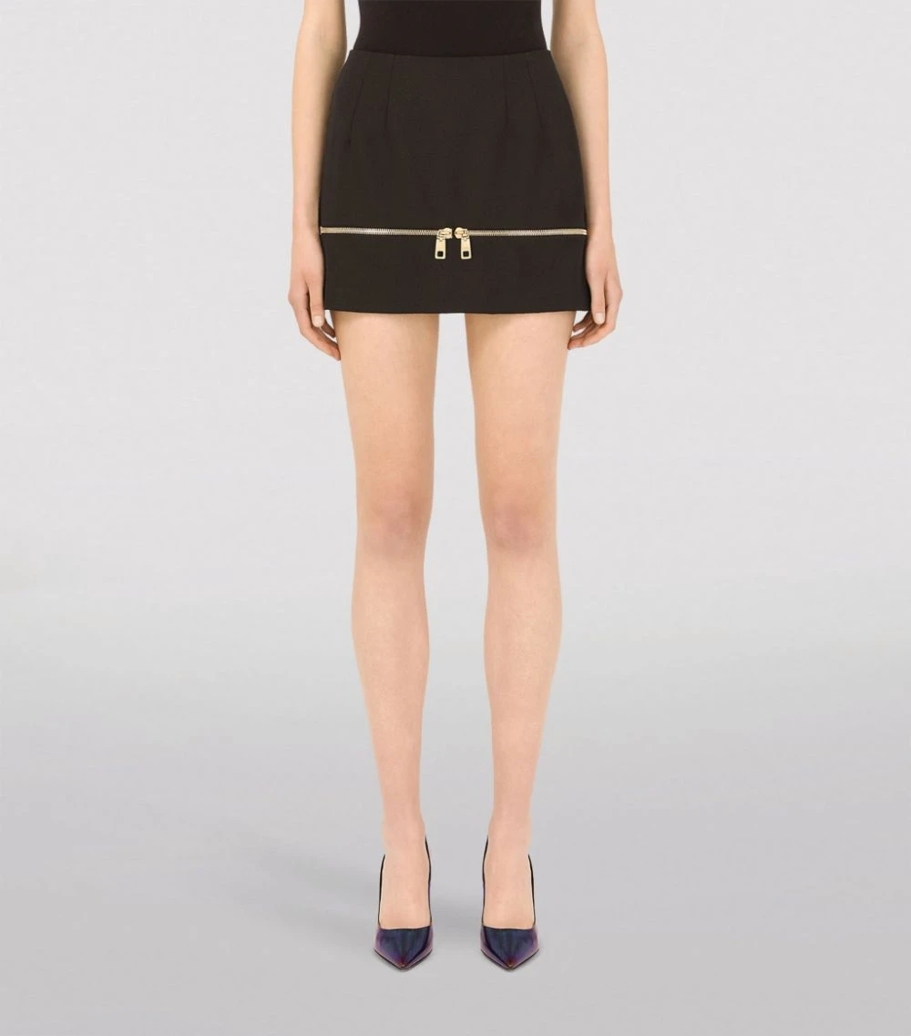 Dolce & Gabbana marries tradition with innovation in the simple but unique design of this mini skirt. Cut in the label’s Italian atelier from stretchy gabardine, this is the A-line silhouette as you’ve never seen it before, reworked with gold-tone zipped detailing to add a feminine, modern edge. Wear it partially unzipped over sheer tights for a daring evening look.