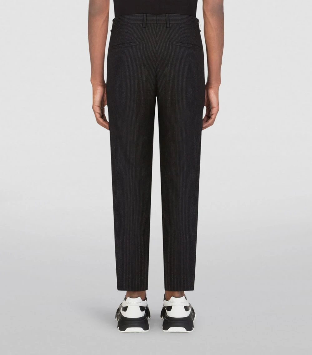 For Autumn/Winter 2020, Dolce & Gabbana explored the dignities of labour, craftsmanship and skill with garments tailored to talented artisans of all trades. These pinstripe wool trousers are crafted from an intentionally roughened wool blend that is truly timeless. Channel the look by styling them with a longline check coat and love-worn boots.