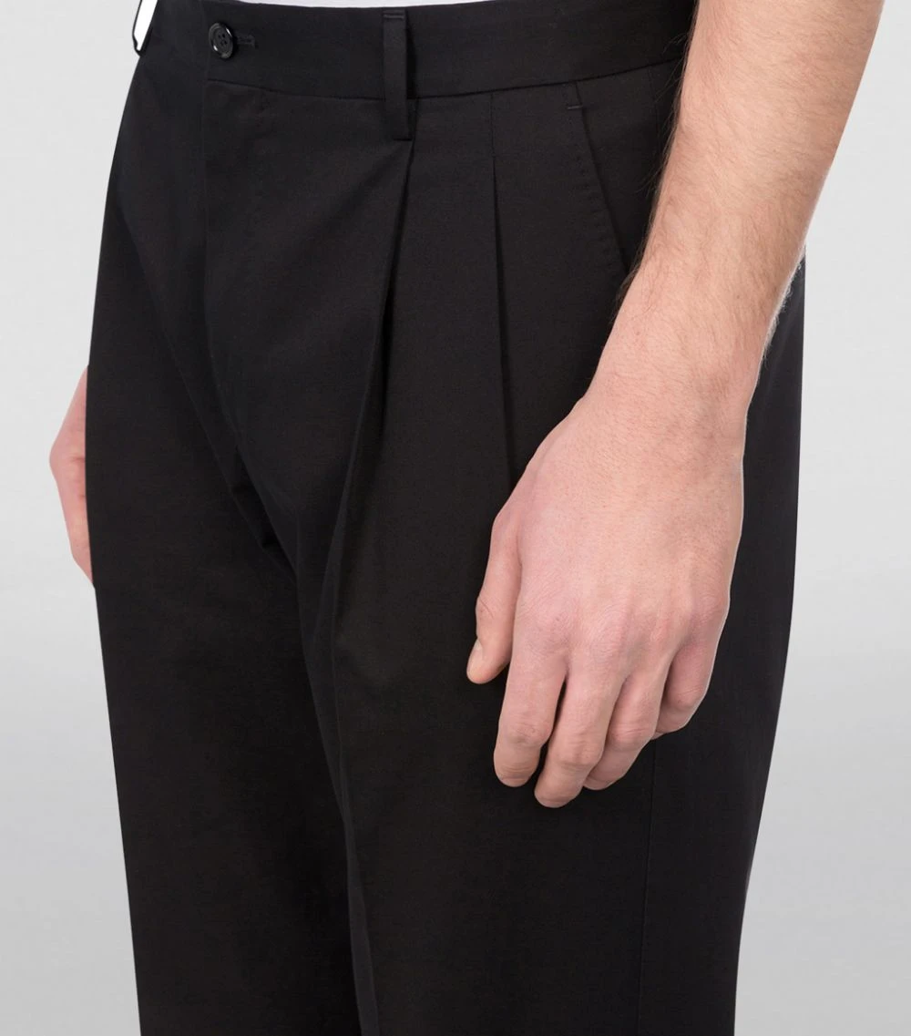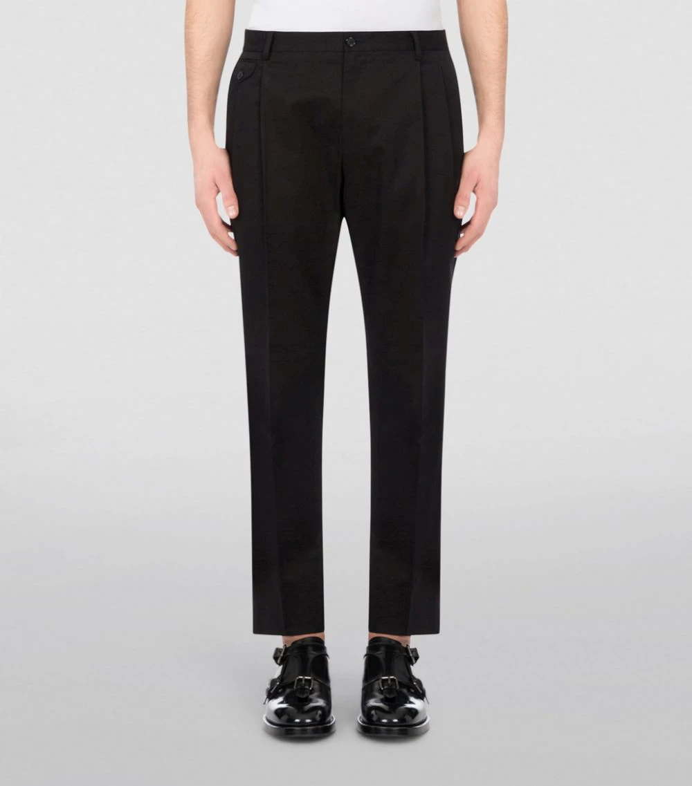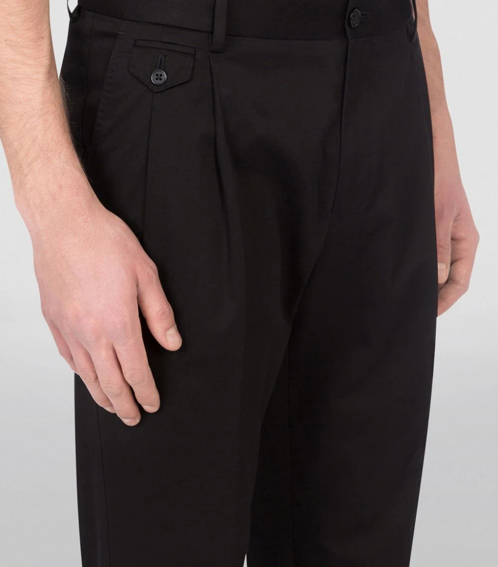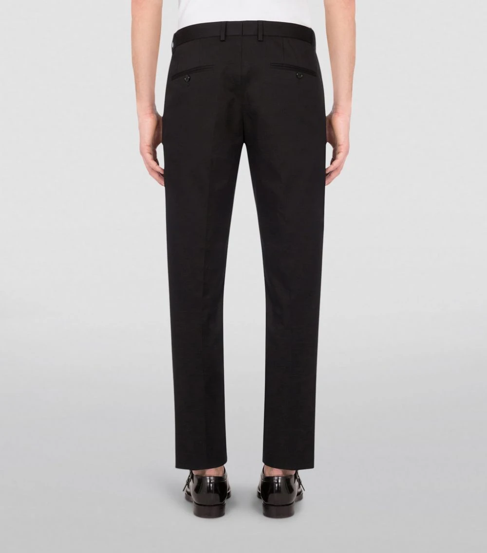 Dolce & Gabbana adheres to the principles of traditional tailoring with these trousers. The minimalist silhouette is defined by a clean-cut penny pocket to the front – a sartorial touch that will effortlessly command attention at smart-casual events. Crafted in Italy from stretch cotton for everyday ease, this silhouette will effortlessly grant ensembles a dash of formality.