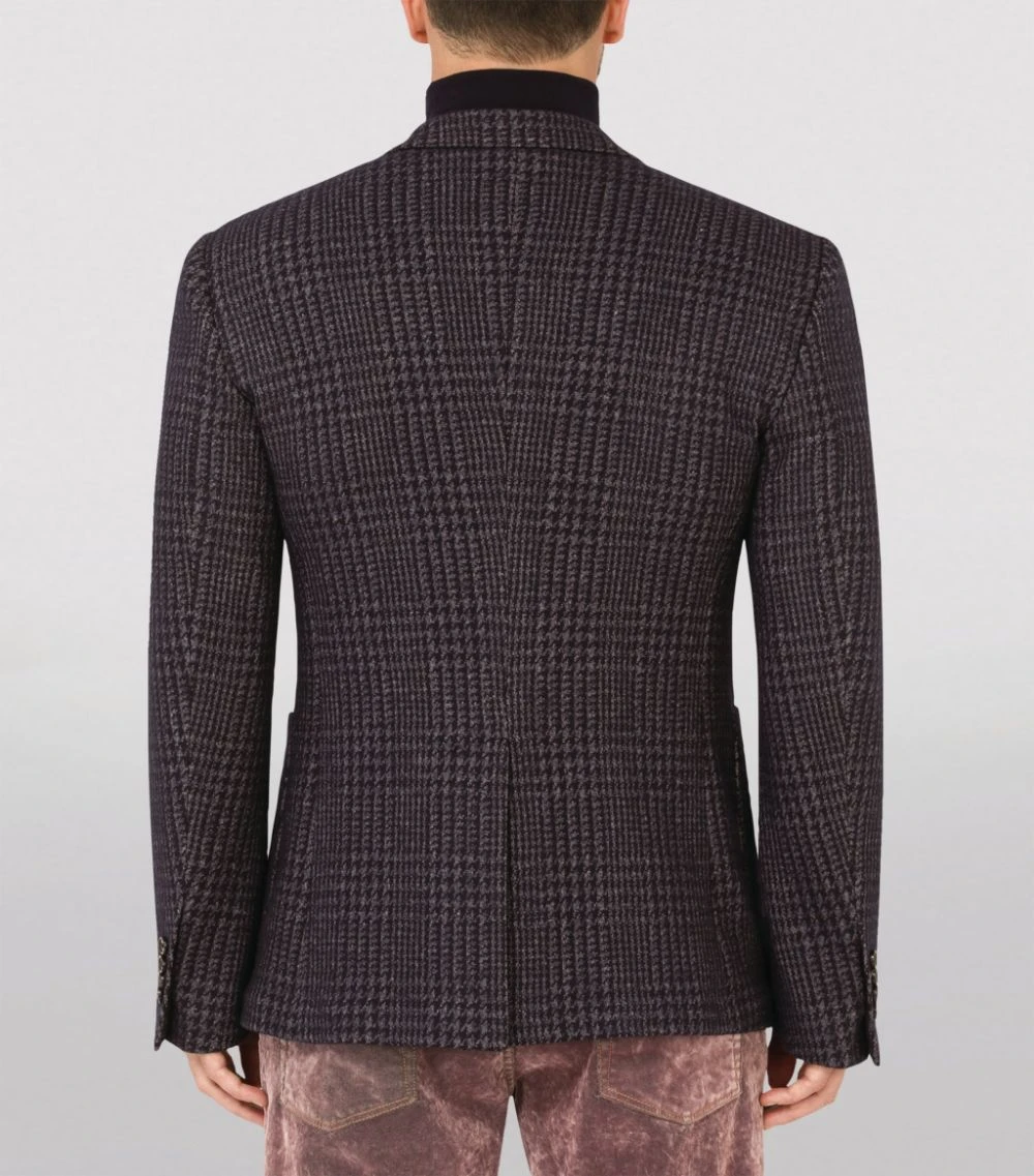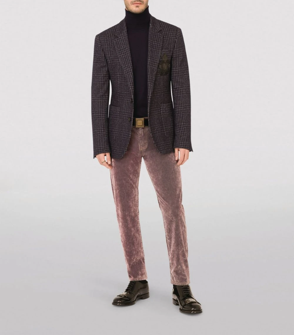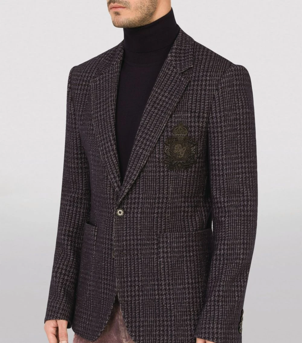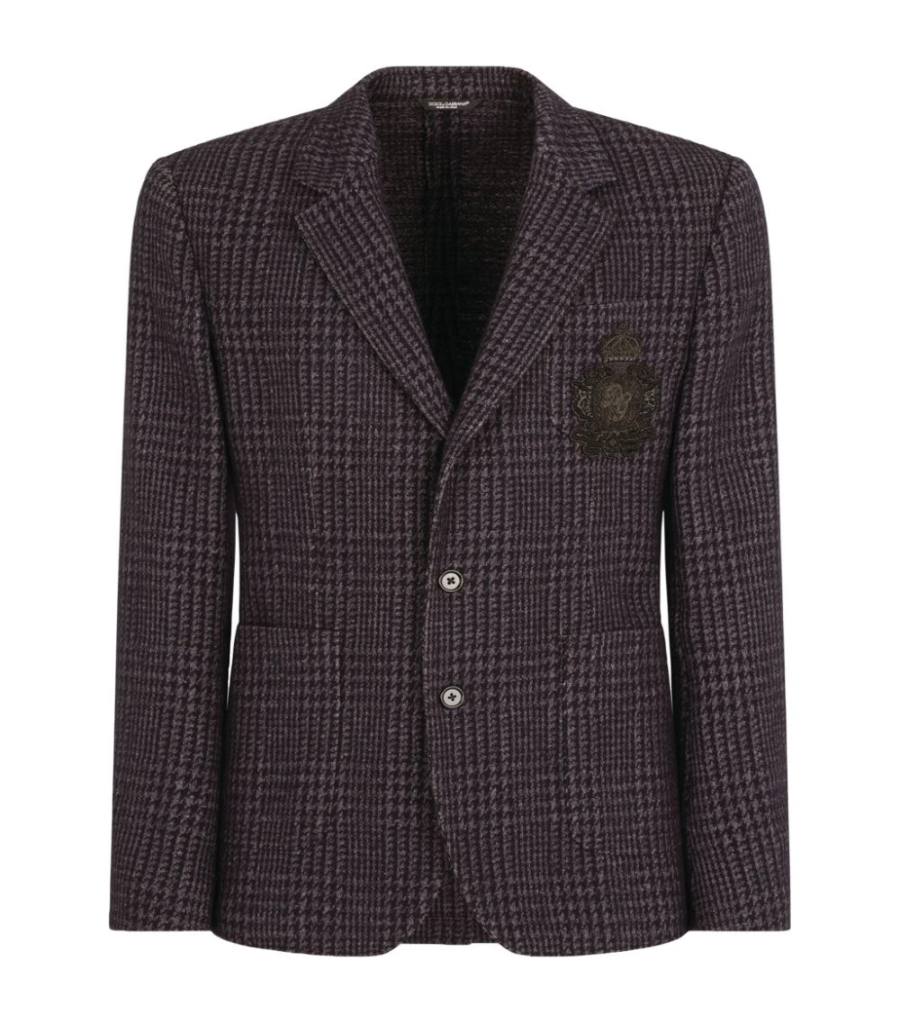 Showcasing its deft sartorial mastery, Dolce & Gabbana softens the formal codes of this tailored jacket in such a way that it becomes more versatile than your standard alternatives. Note the heraldic patch to the chest – a logo in its most sophisticated form – and the houndstooth check that defines the silhouette. Thanks to these details, it partners as naturally with a rollneck and casual trousers as with more formal attire.