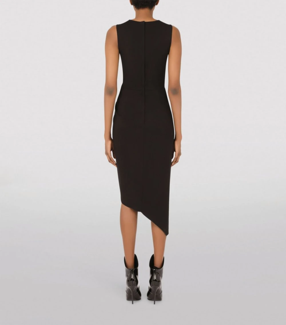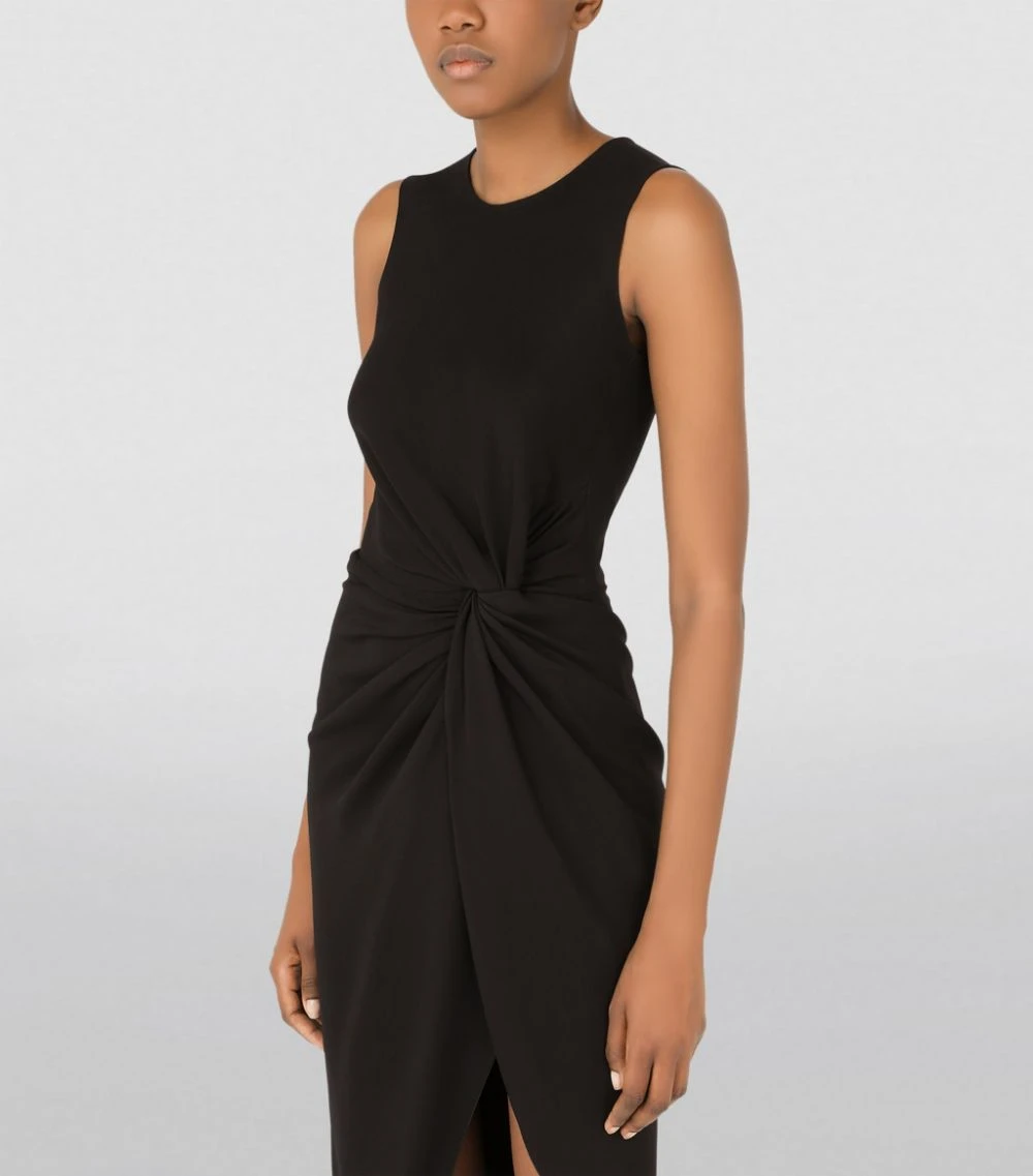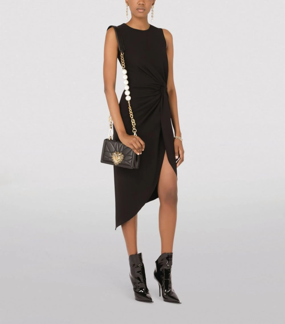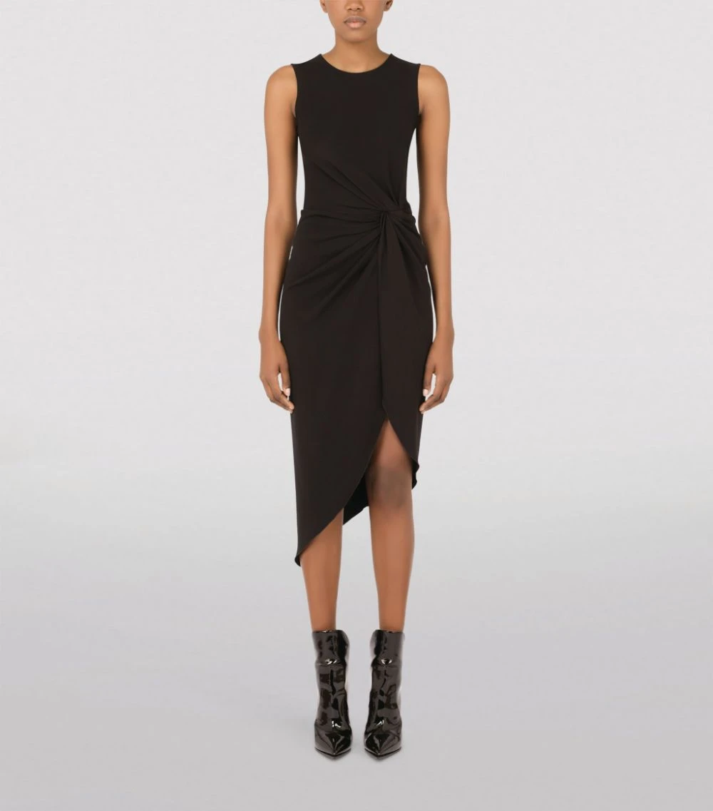 With its latest collection, Dolce & Gabbana transports us back to the ‘90s, giving us a taste of the minimalist style that once defined its Sicilian silhouettes. A far cry from the high-octane pieces its younger clientele may be used to, this knotted dress sticks to a muted palette with little embellishment, letting its sensual lines and skin-baring split do all the talking.