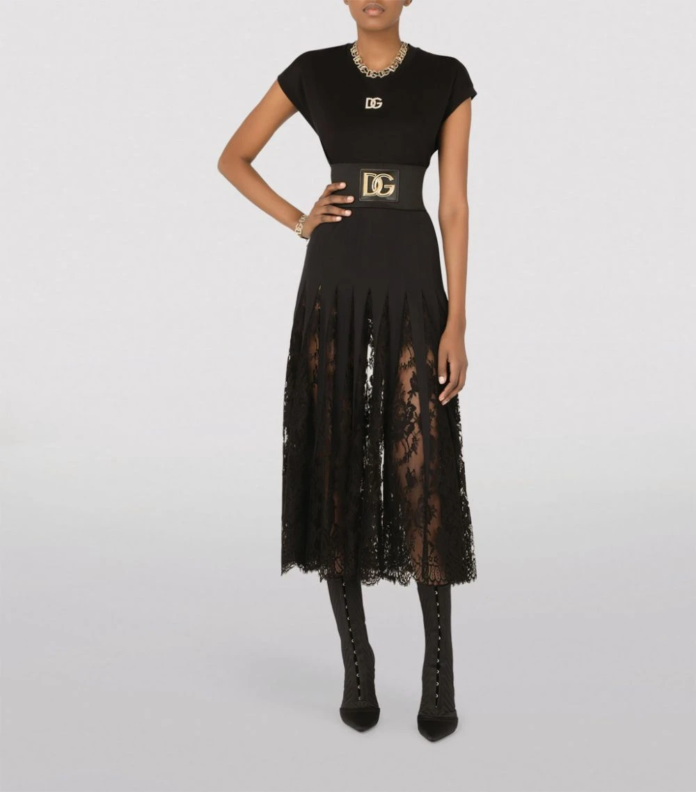 Nothing exudes romance quite like lace and flowing silhouettes, and this skirt from Dolce & Gabbana perfectly encapsulates just that through a darkly gothic lens. Featuring subtle pleats that allow the embroidered sheer fabric to peek out from beneath, the midi-length silhouette feels both ethereal and mysterious. Offering endless styling possibilities, it looks best worn with a logo tee and sock boots for a sleek, streamlined finish that’s undoubtedly Dolce & Gabbana.