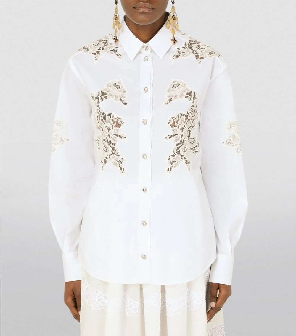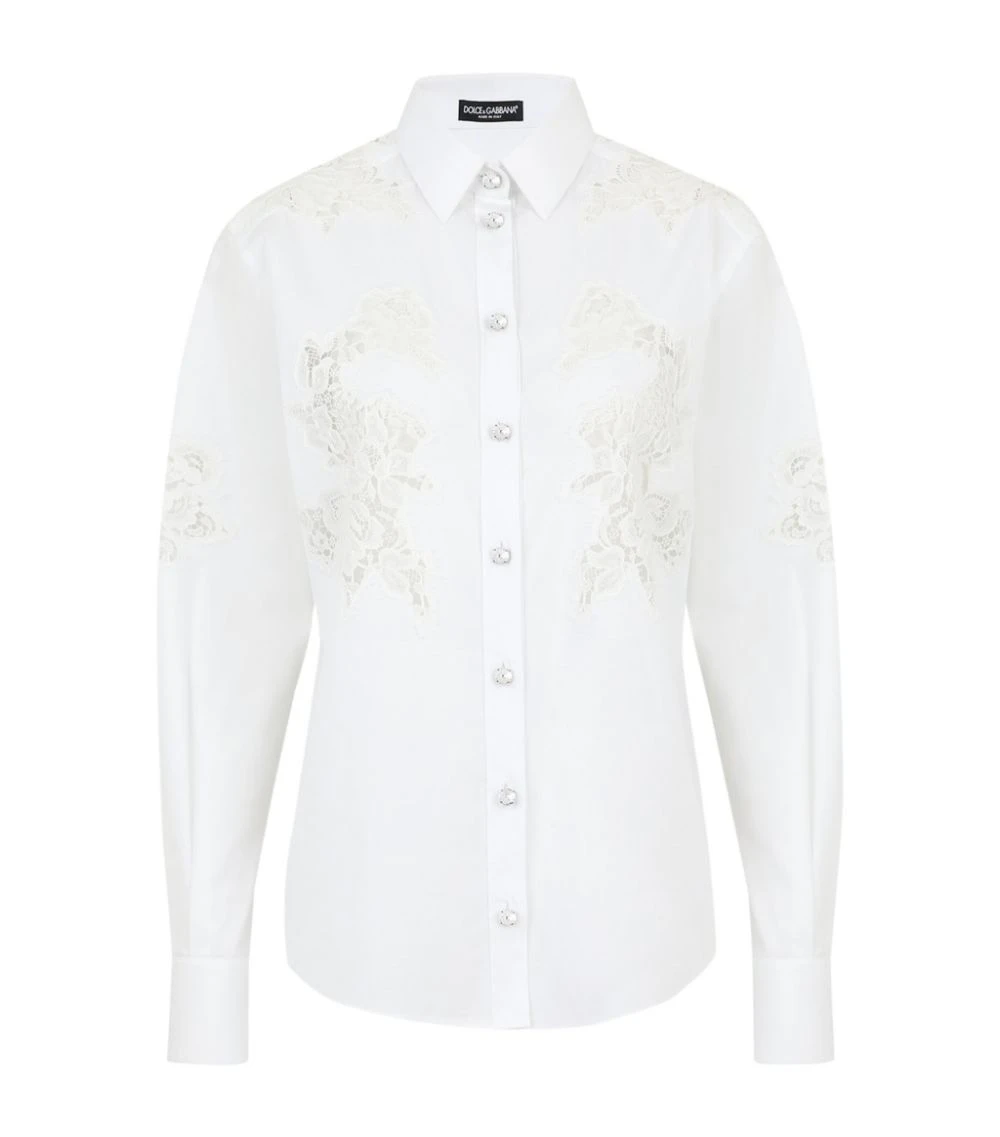 Hailing from Dolce & Gabbana’s Tradizione collection, which champions artisanal craft and Italian culture, this white cotton-blend shirt is by no means a blank canvas. Intricate lace openwork and bejewelled buttons imbue the full-sleeved style with a sense of glamour that comes naturally to the Milanese label.How to wear Harrods: Partner with a lace-adorned midi skirt, elaborate earrings and white slingbacks.