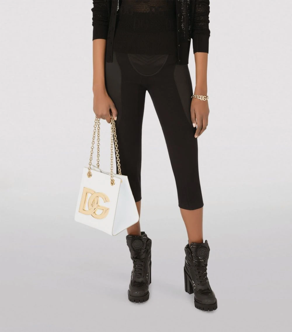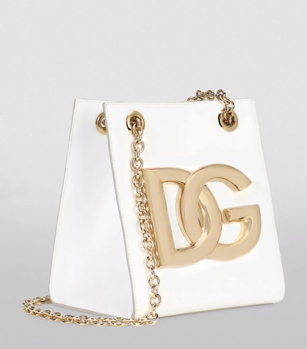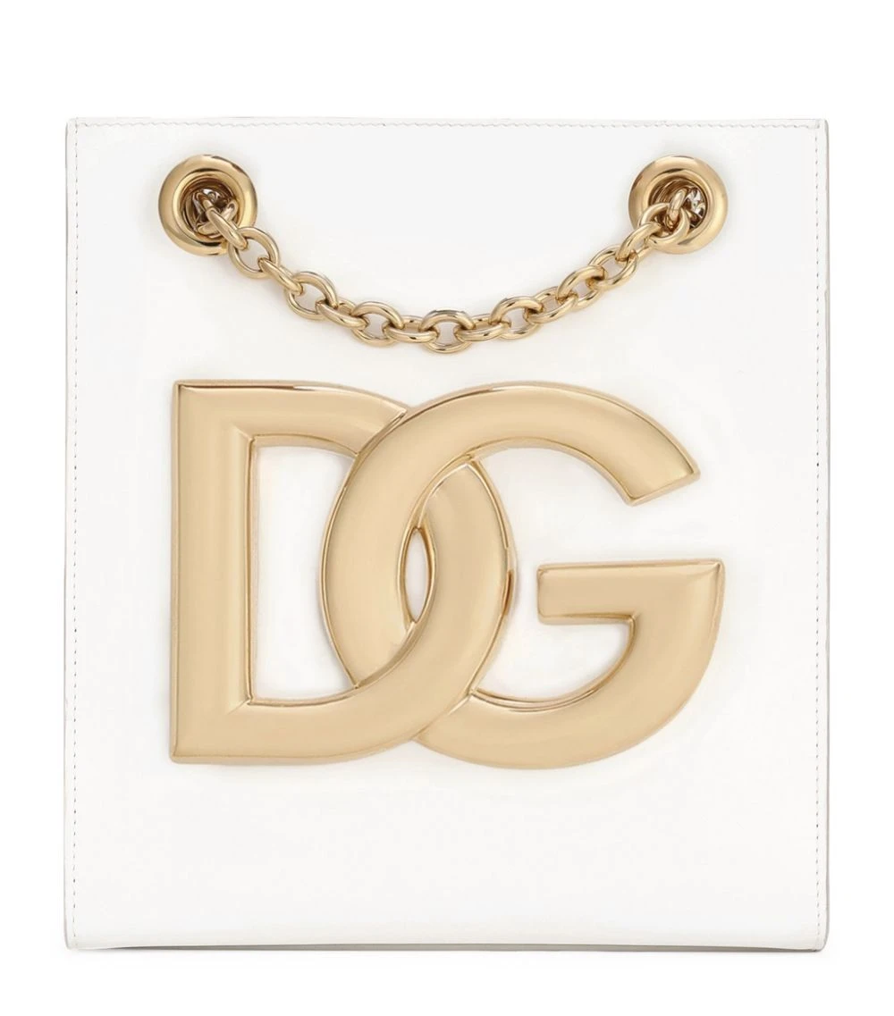 Dolce & Gabbana presents this sleek tote bag from the 3.5 collection. The compact and feminine accessory is detailed with the brand’s refreshed crossover DG logo in shining gold-tone hardware, effortlessly matching the elegant sliding chain strap.