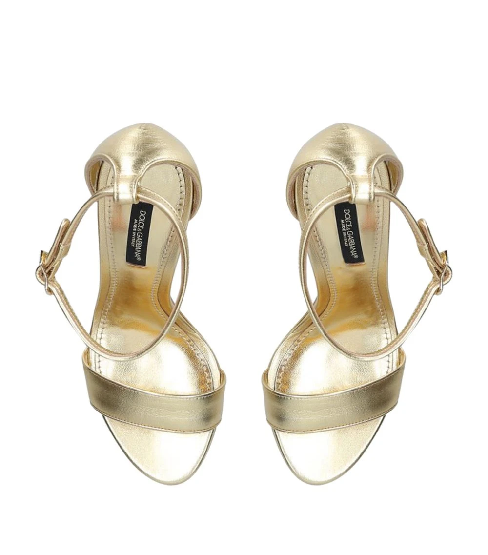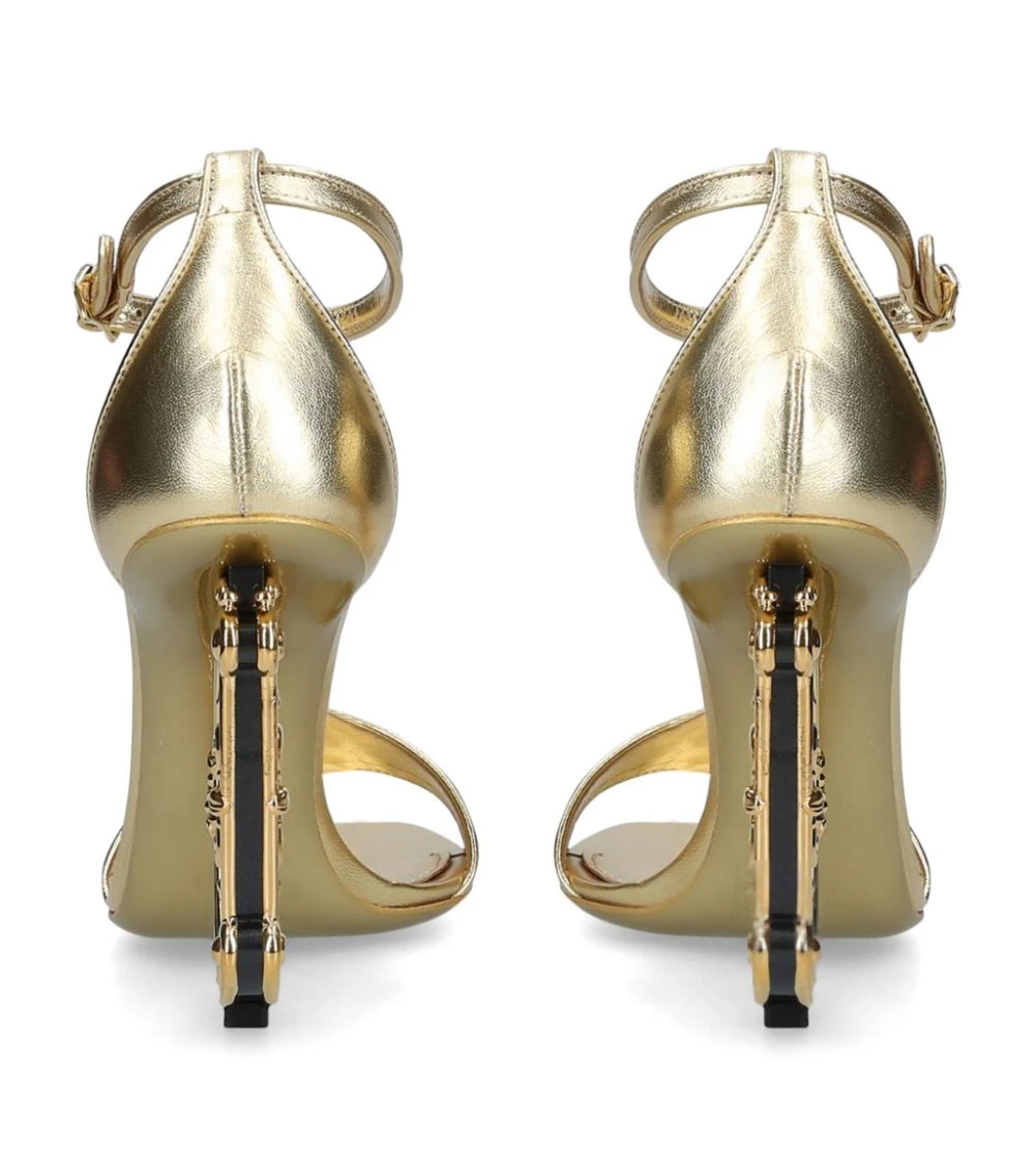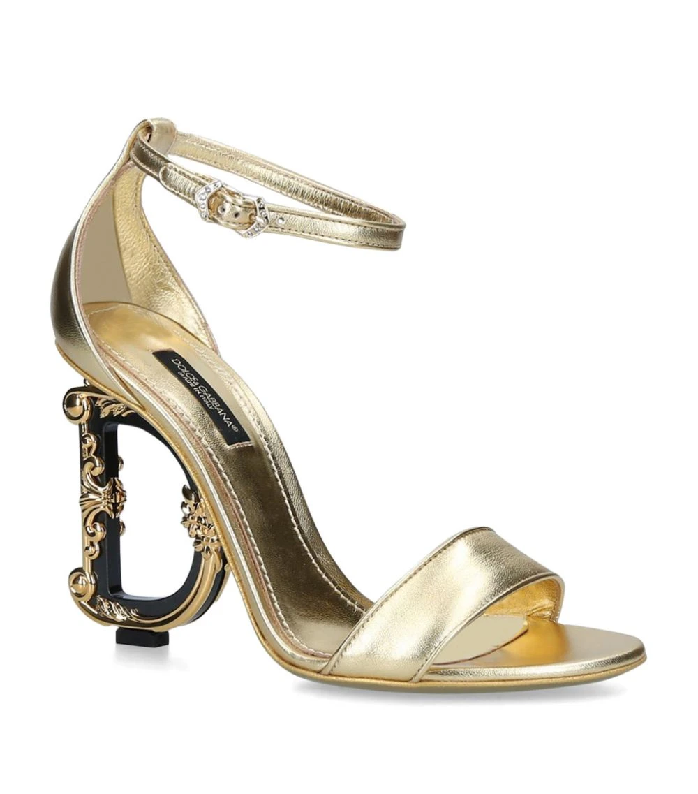 Make a showstopping statement with the avant-garde Keira sandals from Dolce & Gabbana. Featuring the House’s famed initials in a baroque style, the opulent high heel is decorated with a gold-tone finish for an eye-catching look. Complemented by a sleek fastening wrapping around the ankle to elongate the leg, the pair is impeccably crafted in Italy from leather.