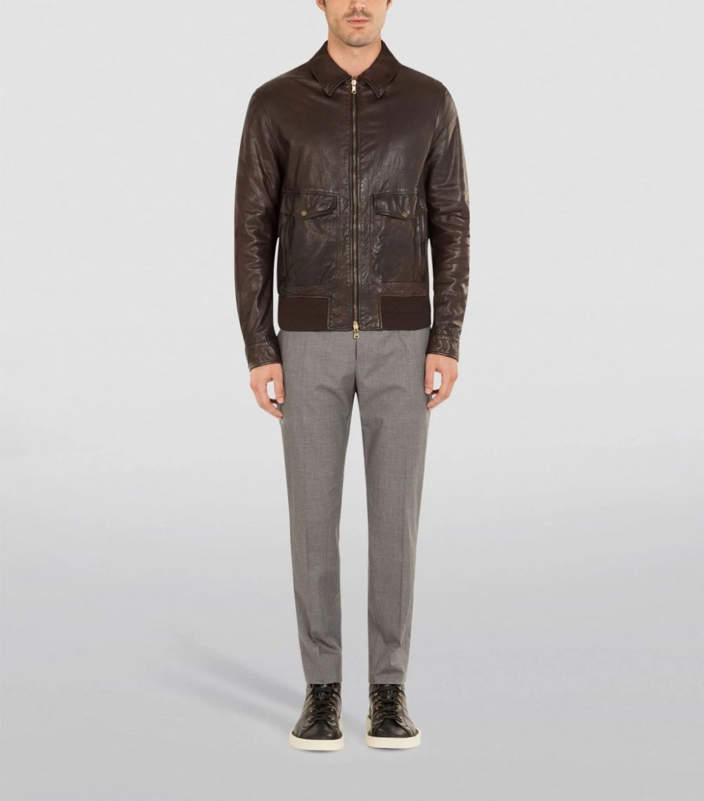 Taking style cues from baseball and western designs to create an outstanding silhouette, Dolce & Gabbana punctuates this jacket with flap pockets for a contemporary edge. Meticulously crafted from supple leather, the sleek silhouette is framed with elasticated trims that secure a sports-luxe finish, while a versatile hue makes complementing smart and casual separates an easy undertaking.