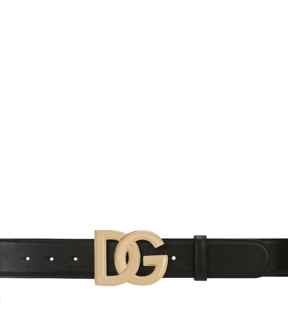 Pledge your allegiance to Dolce & Gabbana with this sleek logo belt. Italian-crafted from buttery-soft leather, the simple piece is imbued with the brandβs signature flair by way of the gold-tone crossover DG logo buckle which ensures every outfit you wear it with is infused with a hint of opulence.
