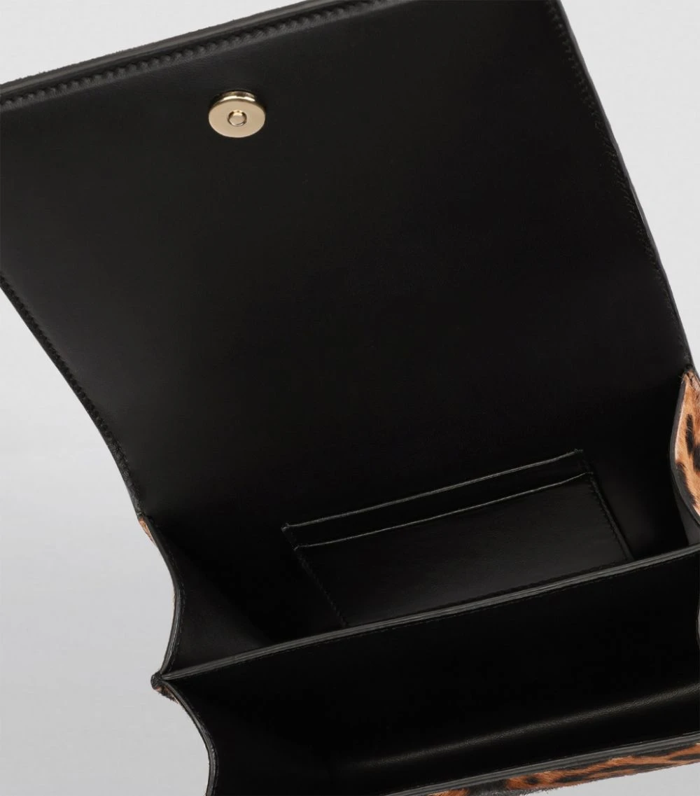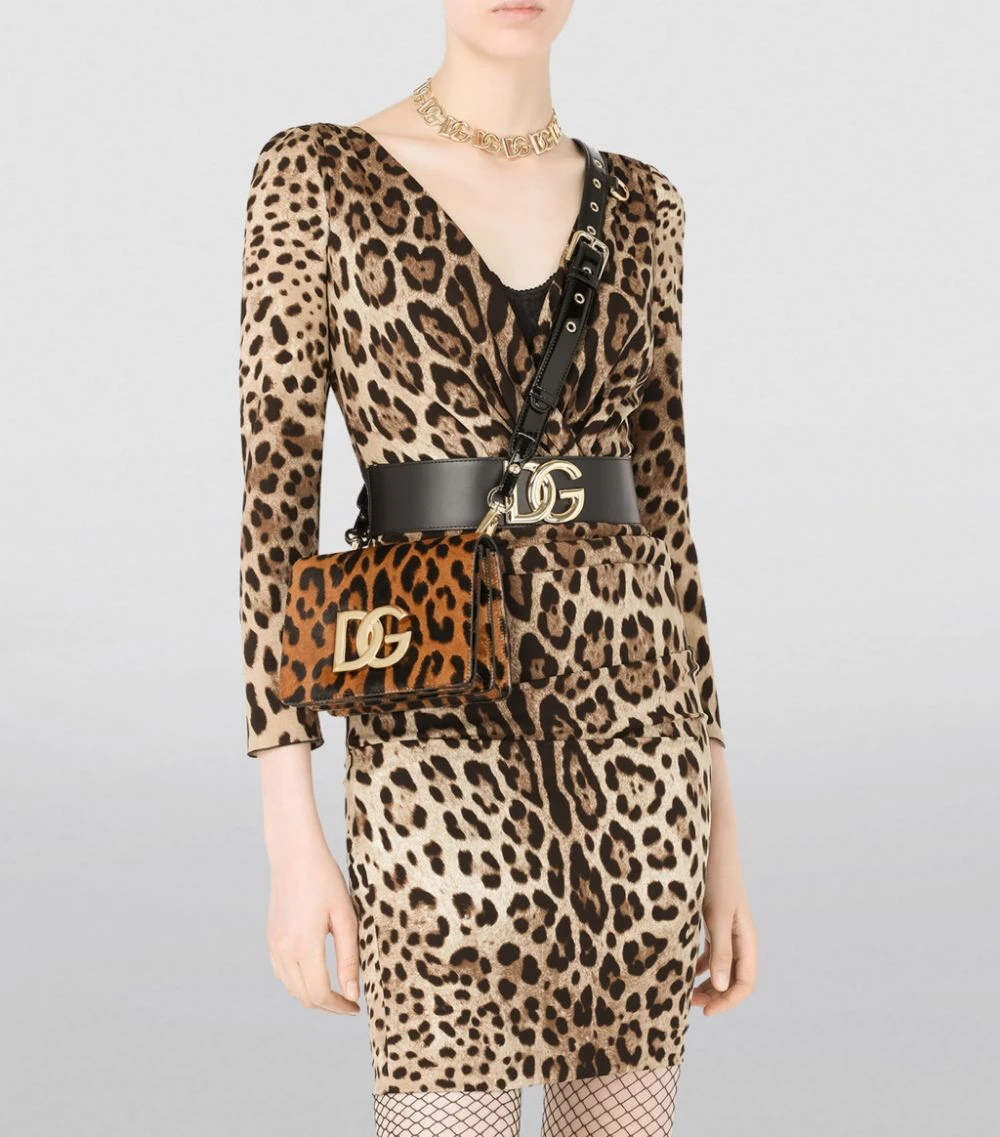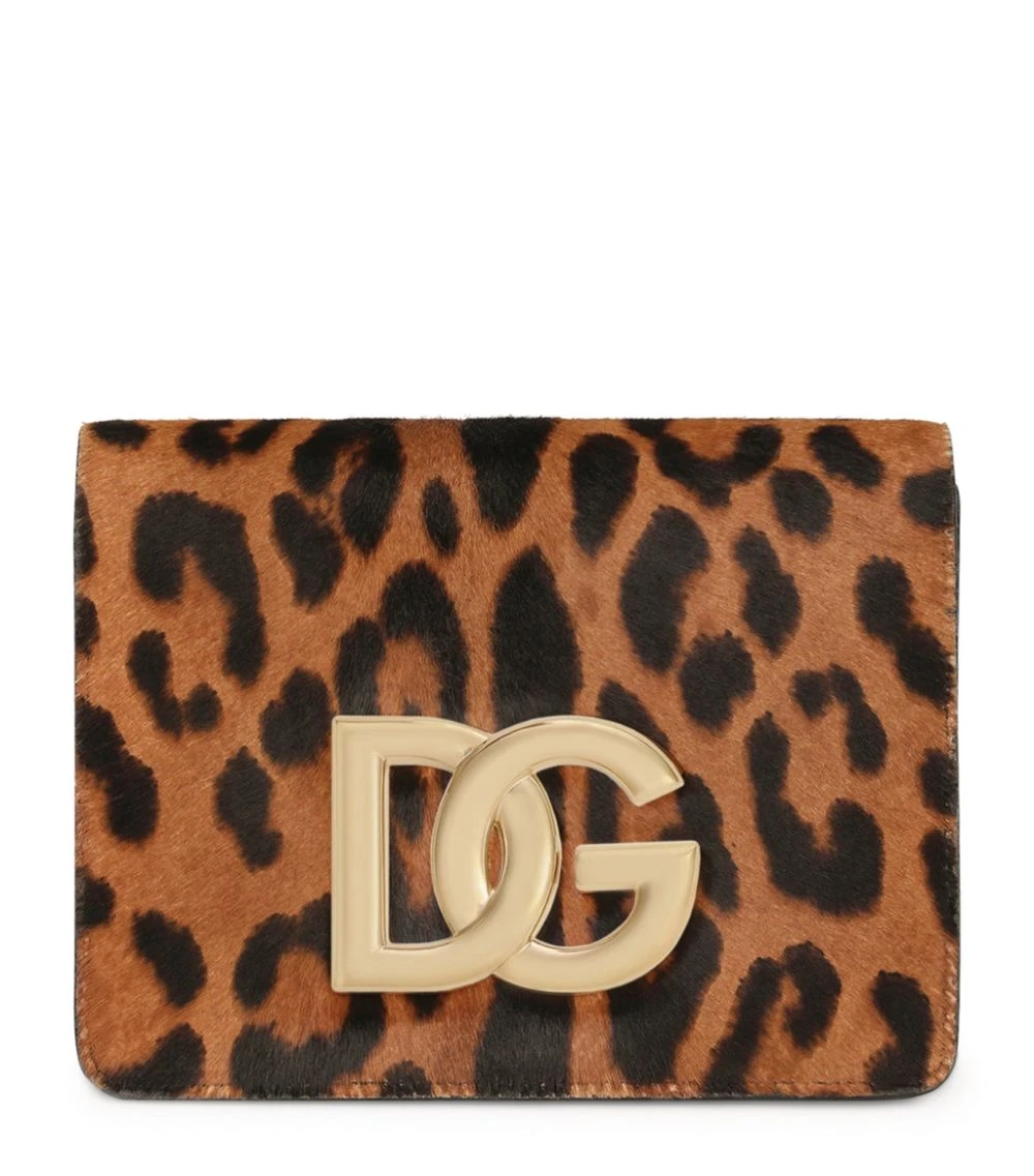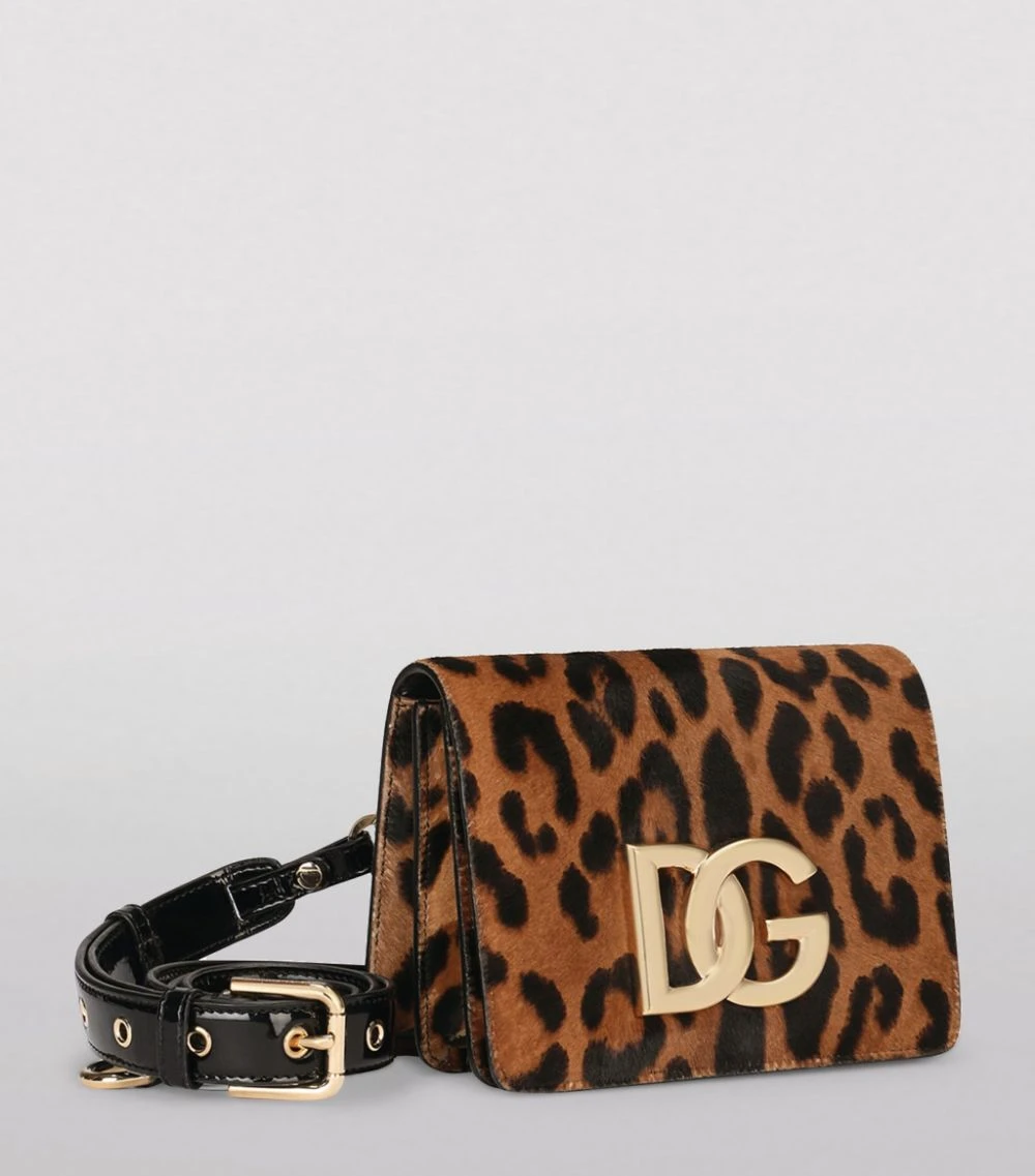 Part of Dolce & Gabbana’s 3.5 collection, this cross-body bag exudes Italian glamour with its compact and sleek silhouette. The accessory showcases the brand’s favoured leopard print, this time imagined in a pony hair, punctuated with the new crossover DG logo in gold-tone hardware.
