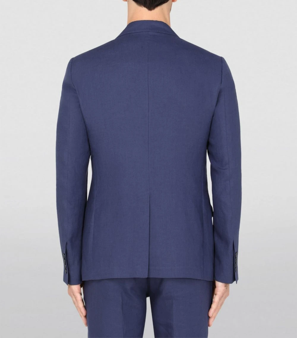 - Jacket: Peak lapels; Button fastening; Exterior pockets; Long sleeves