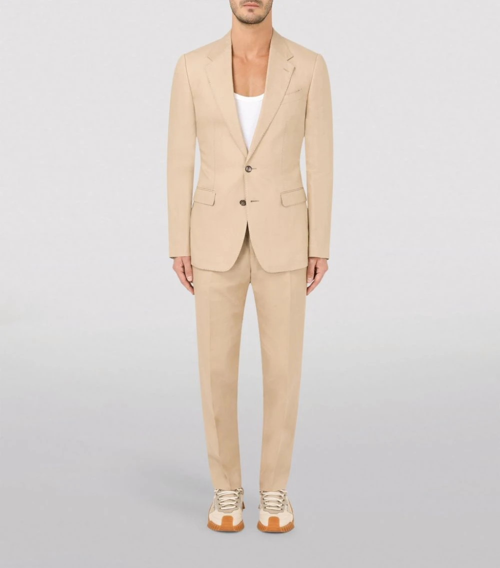 You’ll instantly recognise this suit as a piece that walked the Dolce & Gabbana Spring/Summer 2021 catwalk – its sandy hue recalls the colours of the seaside that inspired the House throughout the collection. Exercising its expertise in tailoring, the label crafts this Taormina-fit jacket and trousers from lightweight linen.