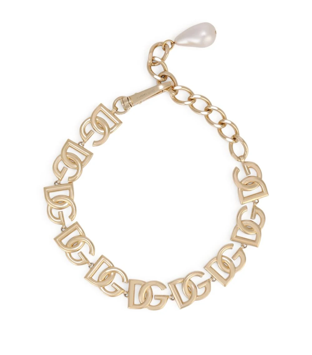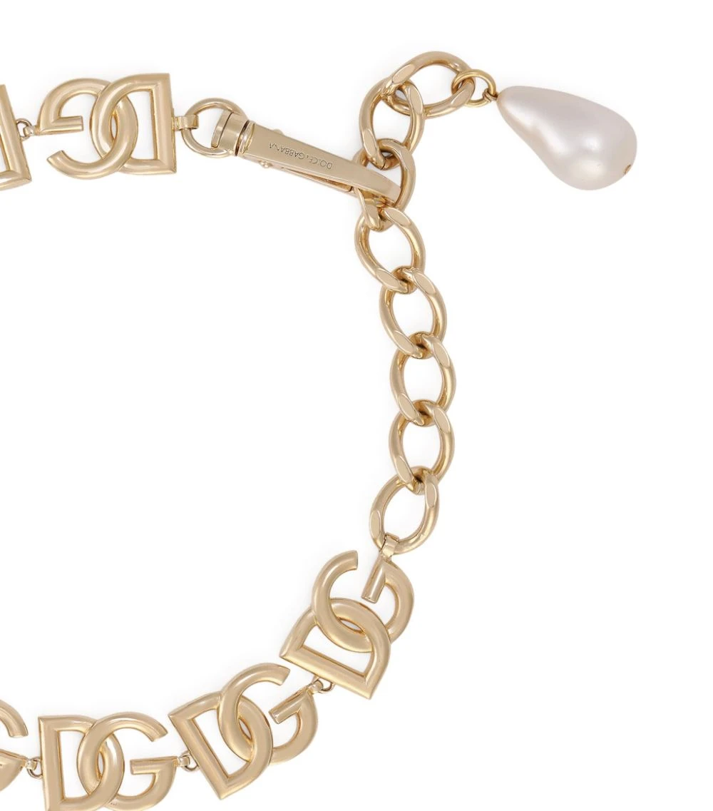 The ‘DG’ motif on this necklace emphasises the pride that Dolce & Gabbana has when crafting their covetable jewellery. Finished with a hook clasp and suspended pearlescent attachment, this necklace will perfectly complement any evening ensemble.