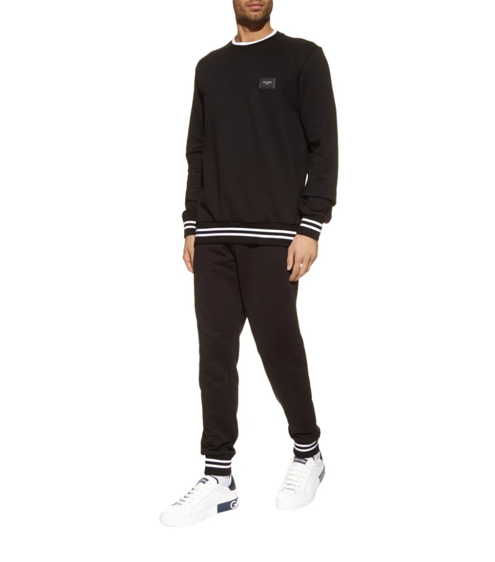 Taking a muted stance towards the logomania trend of the new season, this sweatshirt from Italian powerhouse Dolce & Gabbana is simply detailed with a branded chest plate for recognisable appeal. Crafted from luxuriously soft loopback cotton, elevate the varsity-inspired trims by styling with the matching sweatpants.