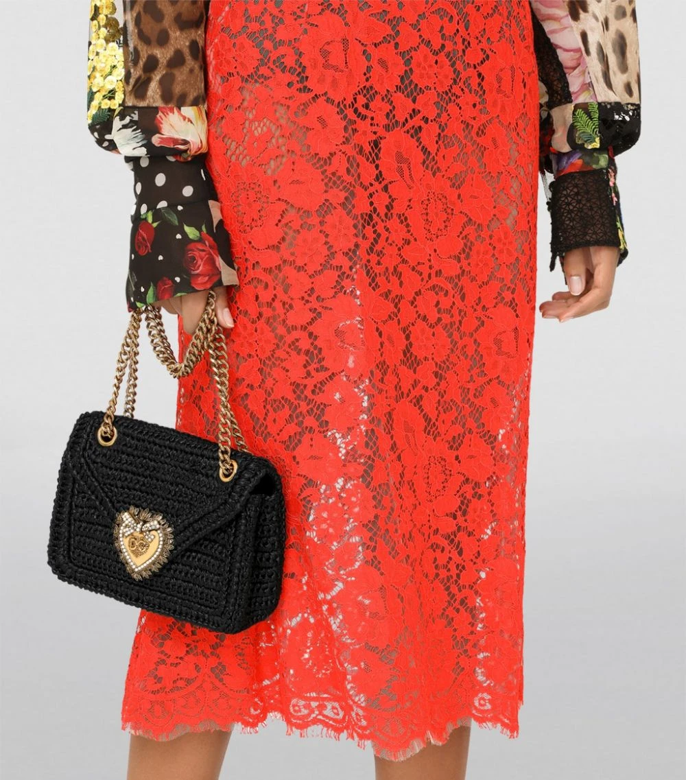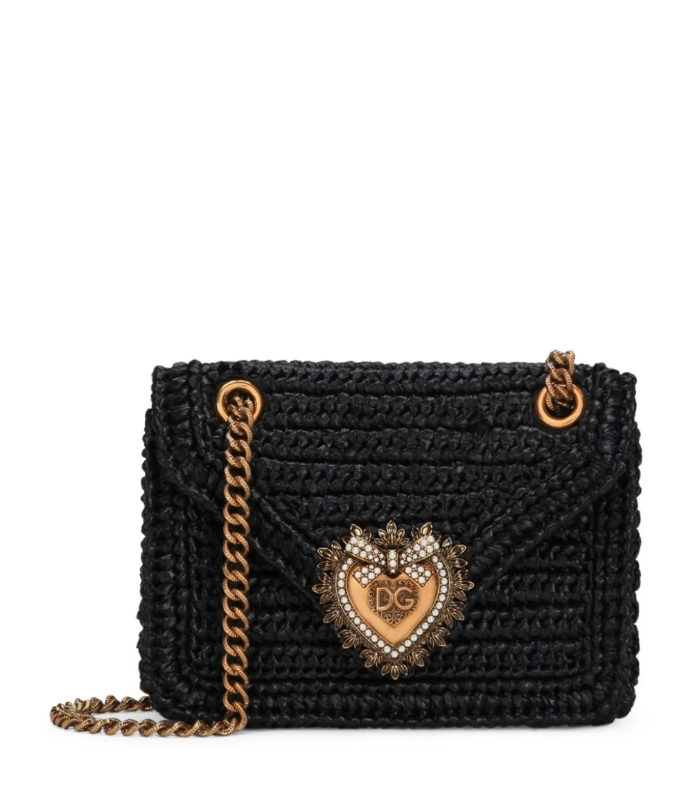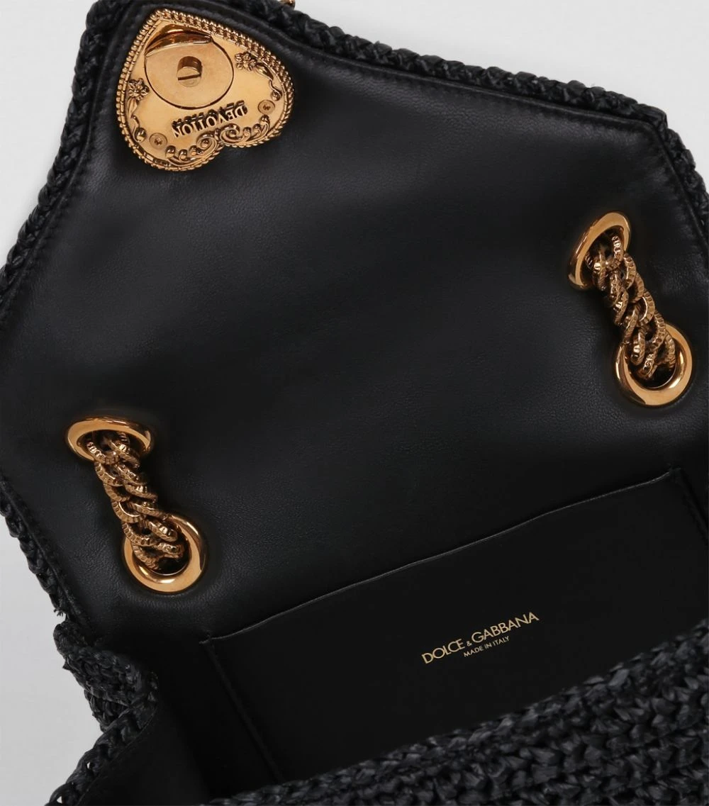 First seen majestically floating along the runway from a drone in Dolce & Gabbana’s Autumn/Winter 2018 collection, the medium Devotion bag is credited as an object of desire. Expertly crafted here from vibrantly hued raffia, deeming it the perfect summer accessory, it’s characterised by the intricate Sacred Heart embellishment to the front fastening. Open it to reveal a spacious interior with a slip pocket while suspending it from your shoulder with the opulent gold-tone chain strap.