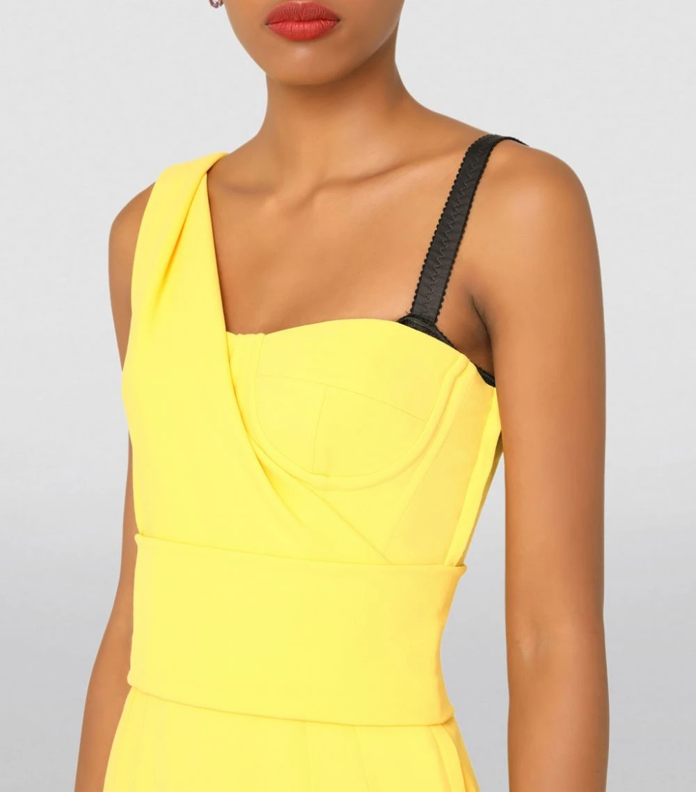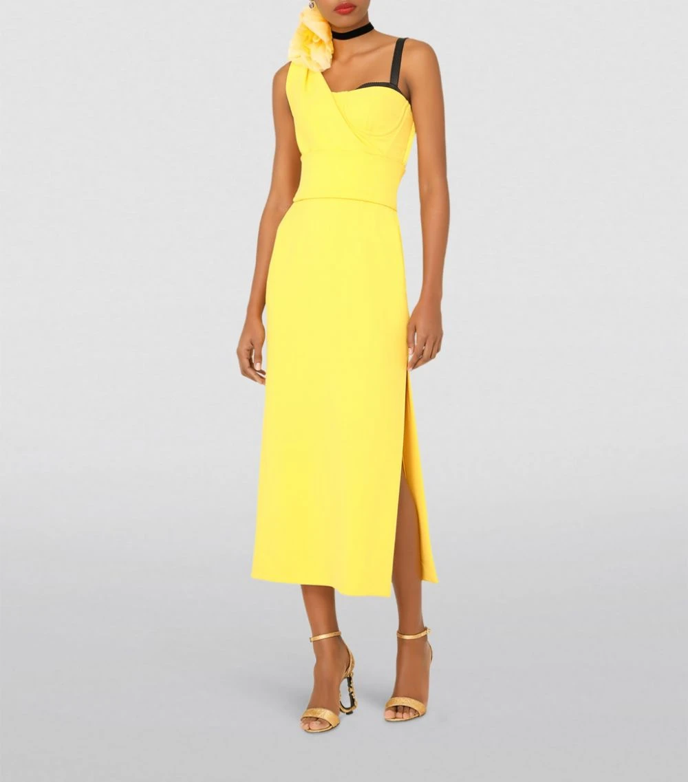Look no further than Dolce & Gabbana for your next semi-formal occasion. This dress is representative of the brand’s inherent romanticism and innate knowledge of the female form. With a corset-style bust and a statement-making one-shoulder cut, this is effortless elegance at its best.