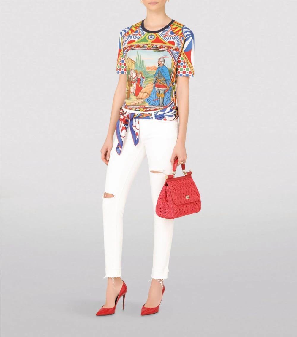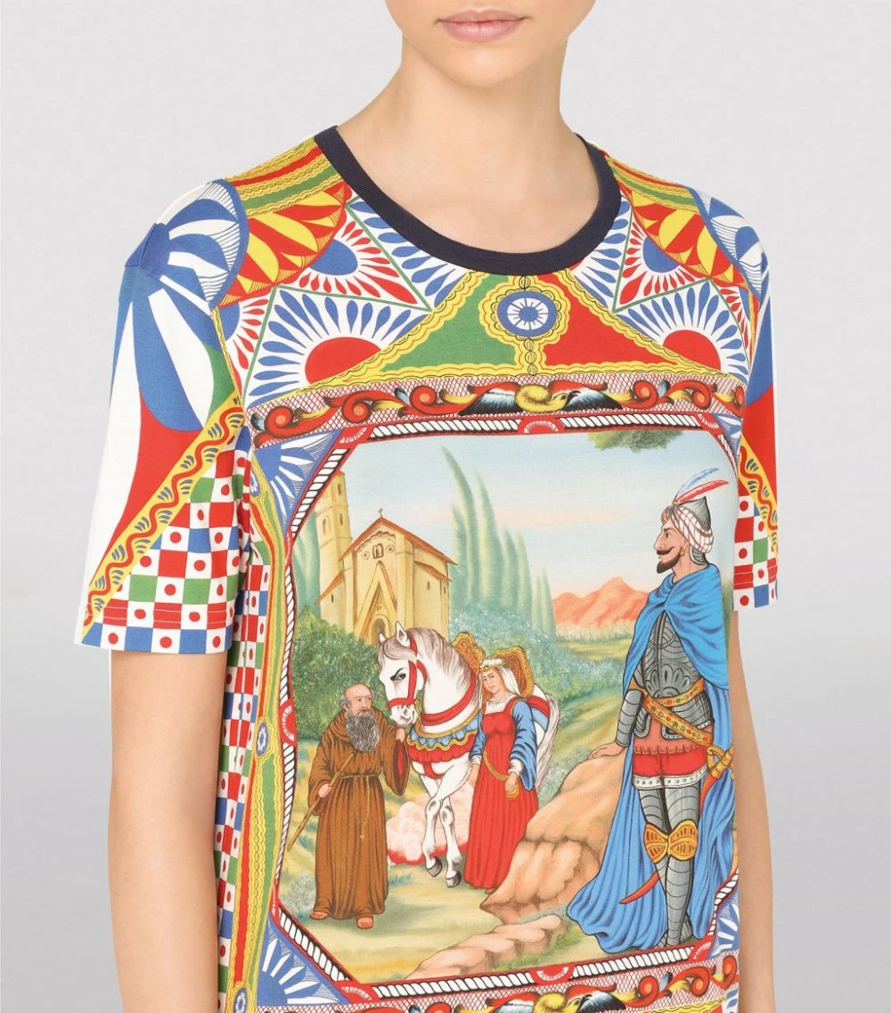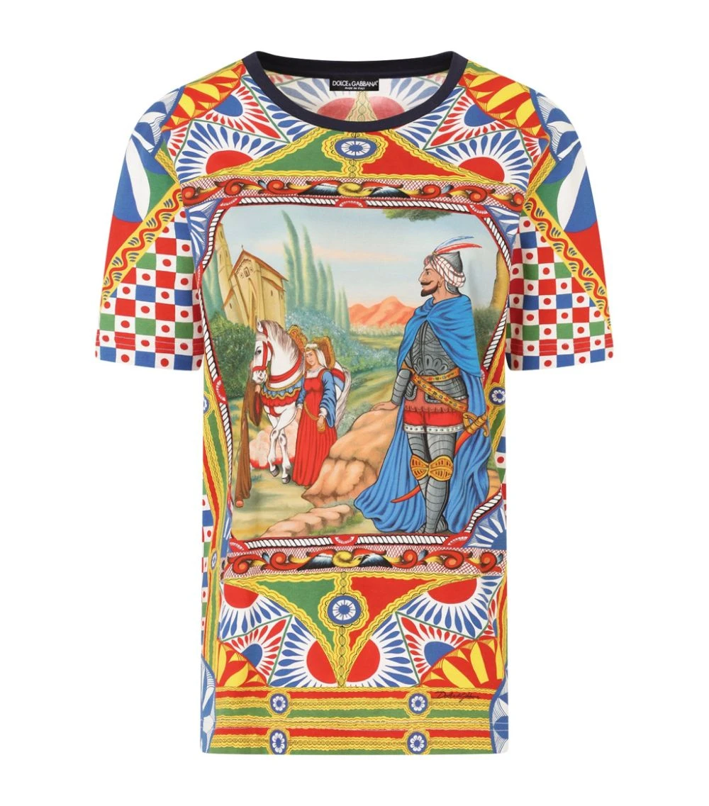 Traditional Italian elegance is prevalent throughout all of Dolce & Gabbana’s collections, perfectly demonstrated with this T-shirt. Crafted from cotton for a lightweight feel, the piece is detailed with an old-fashioned scene and geometric shapes. Partner with pared-back separates to balance the intricacy of the piece.