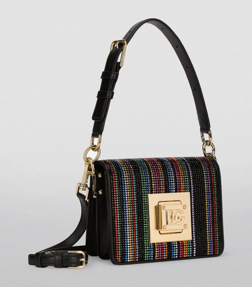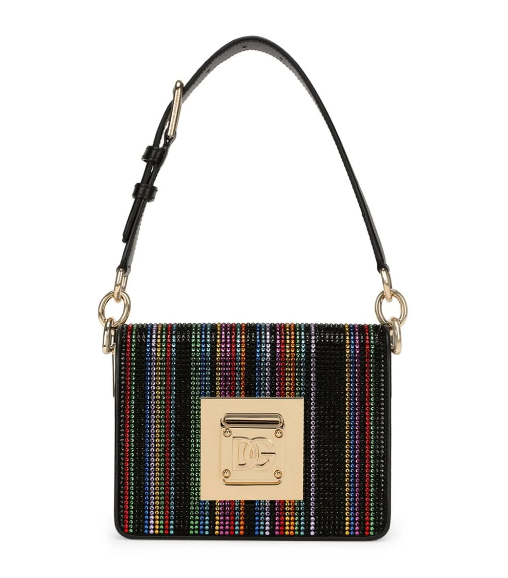 Part of the Therapy collection, this shoulder bag from Dolce & Gabbana is both feminine and elegant. Imagined with colourful rhinestones embellished all over the silhouette for a glistening pop of colour, this multicoloured design can be worn from the top handle or across the body with the optional strap.