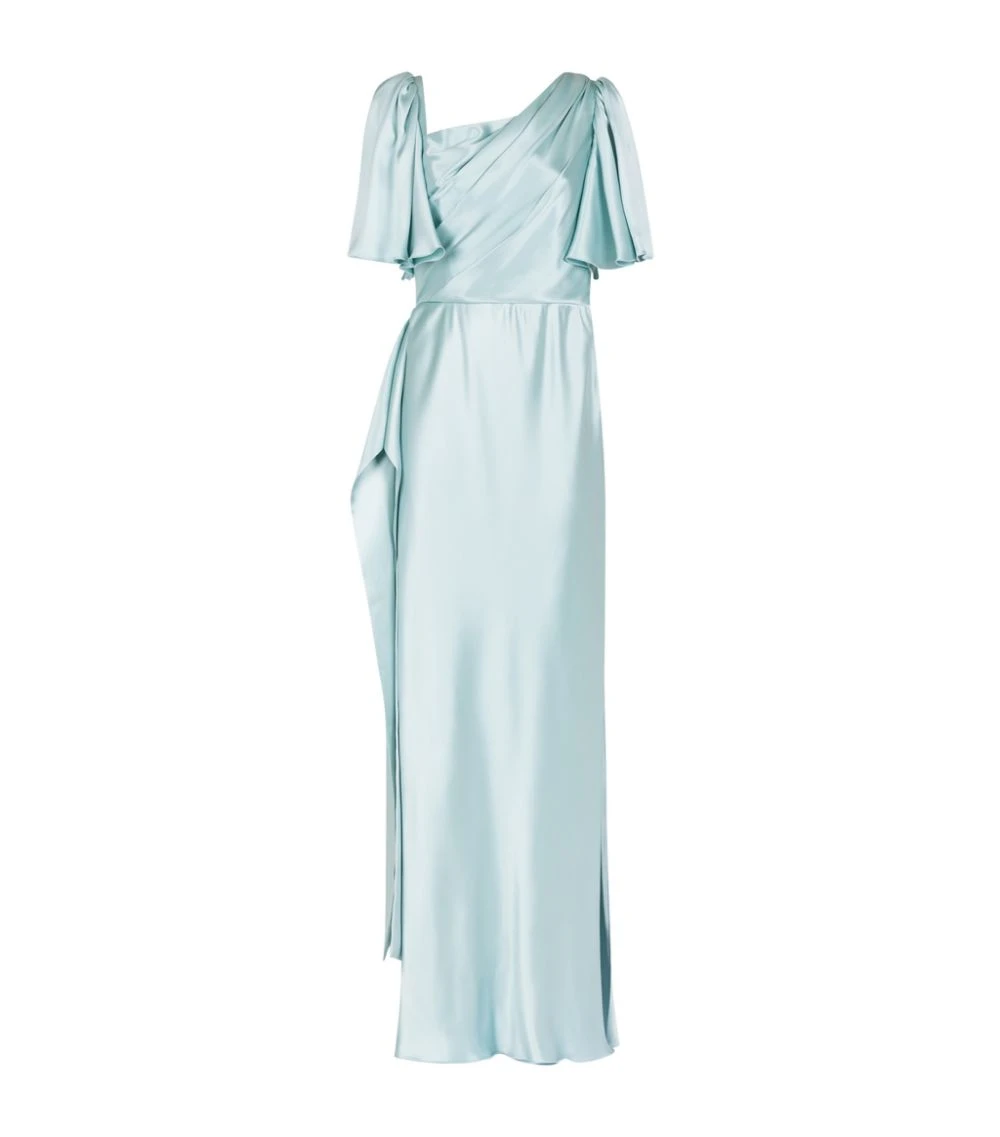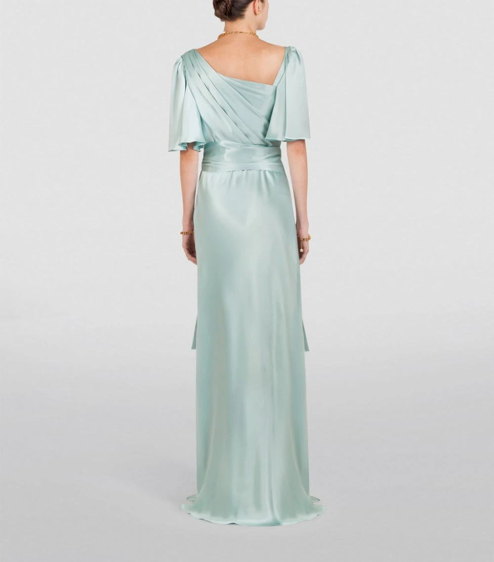 The sumptuous fabric glides effortlessly along your form before pooling delicately at the floor.