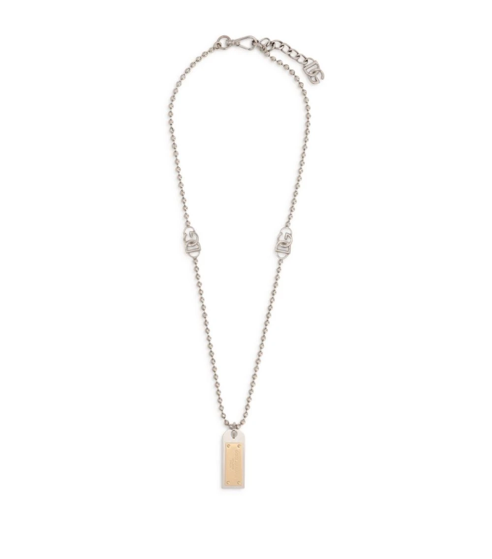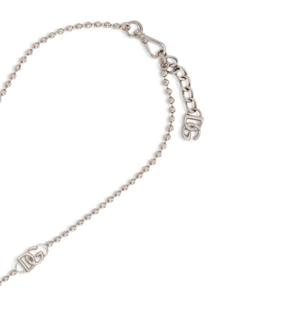 Add a final touch of elegance to your streetwear or formalwear ensembles alike with this necklace from Dolce & Gabbana . Suspended from a slender silver-tone chain, the accessory is detailed with the refreshingly new crossover logo that bares the House’s initials.
