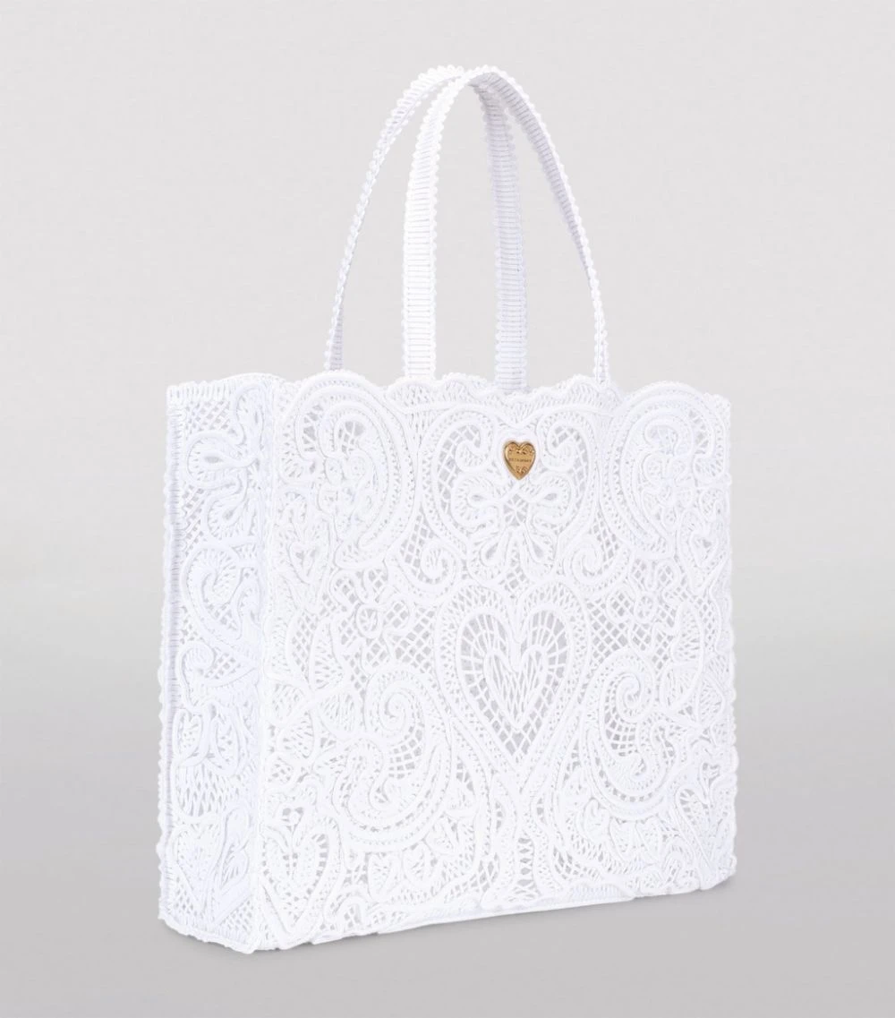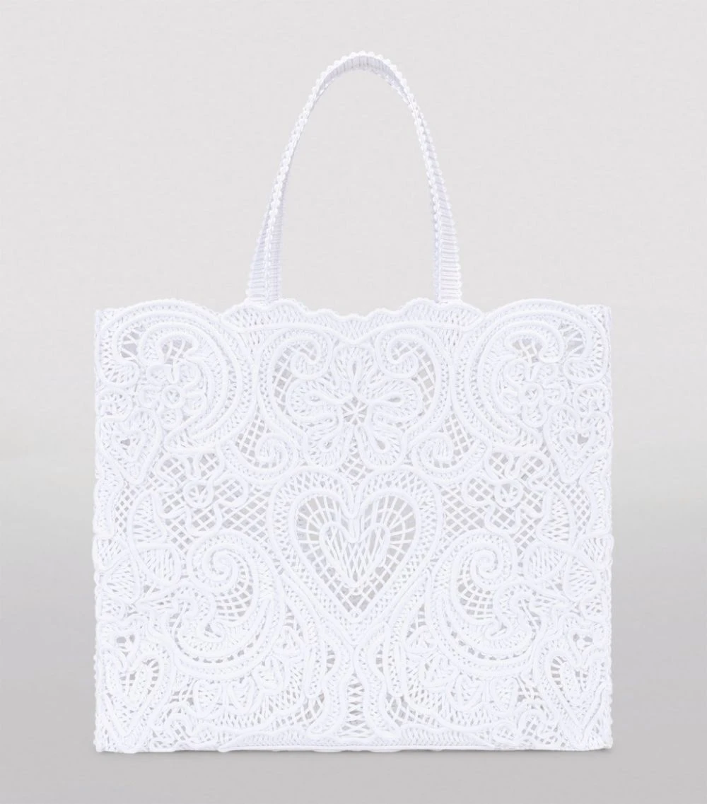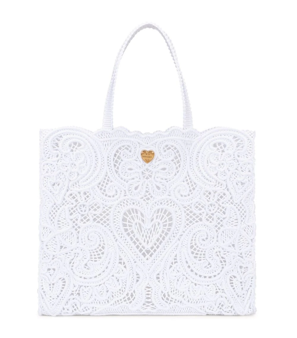 Championing Dolce & Gabbana’s deep-rooted connection with one of Italy’s most idyllic islands – Sicily- the Beatrice Tote bag is a must-have for your summer portfolio. Characterised by its fine cordonetto lace profile – a traditional Sicilain fabric – the bold accessory features the Maison’s signature heart motif both within the lace and the hardware.