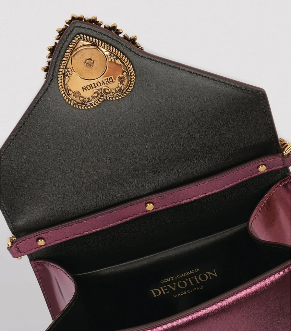 First seen majestically floating along the runway from a drone in Dolce & Gabbana’s Autumn/Winter 2018 collection, the Devotion shoulder bag is credited as the ultimate object of desire. Italian-crafted from smooth calfskin leather, it is characterised by the intricate Sacred Heart embellishment, glistening with jewels and a pearl inlay to create a symbol for love.