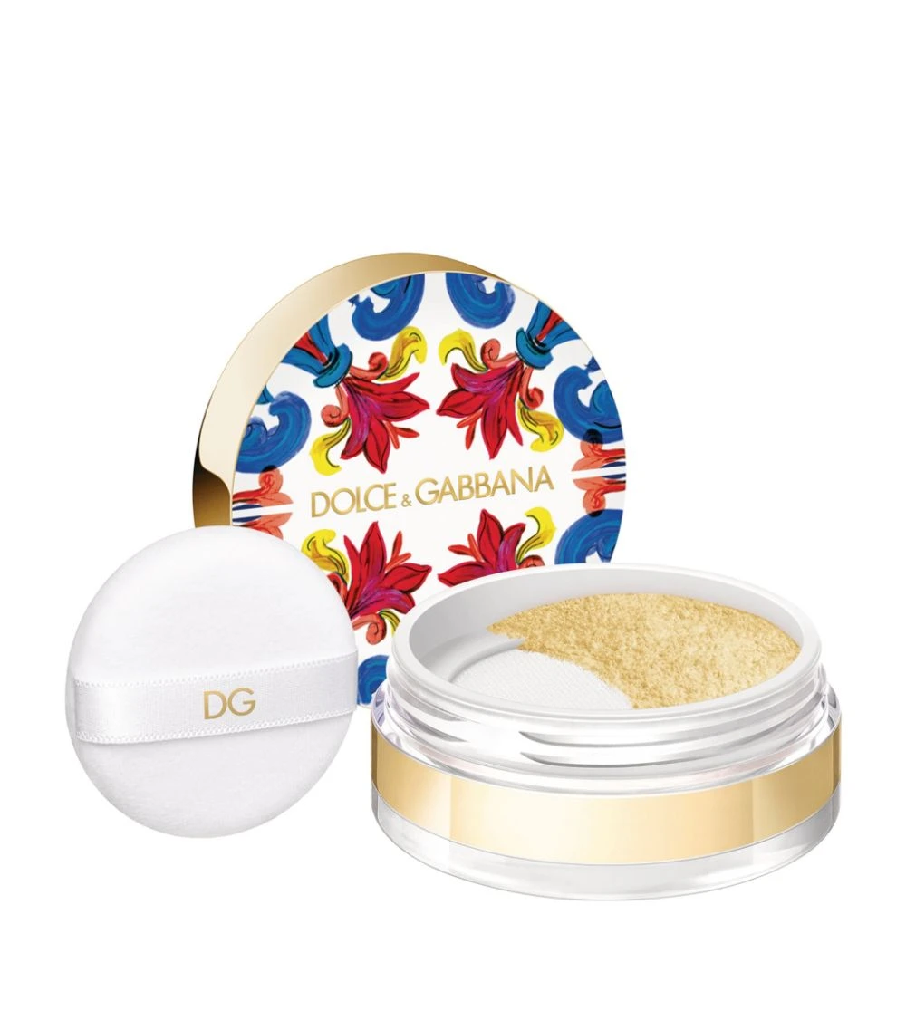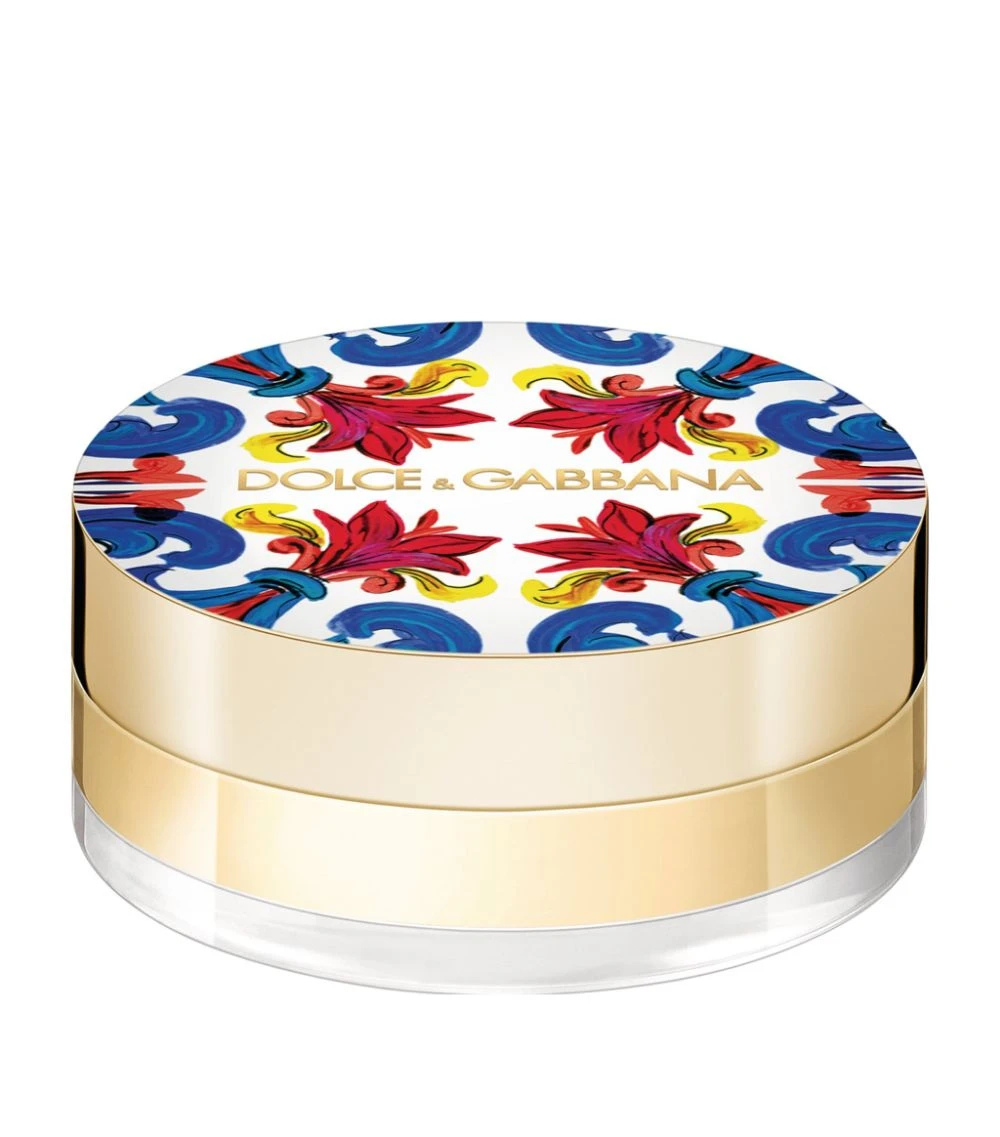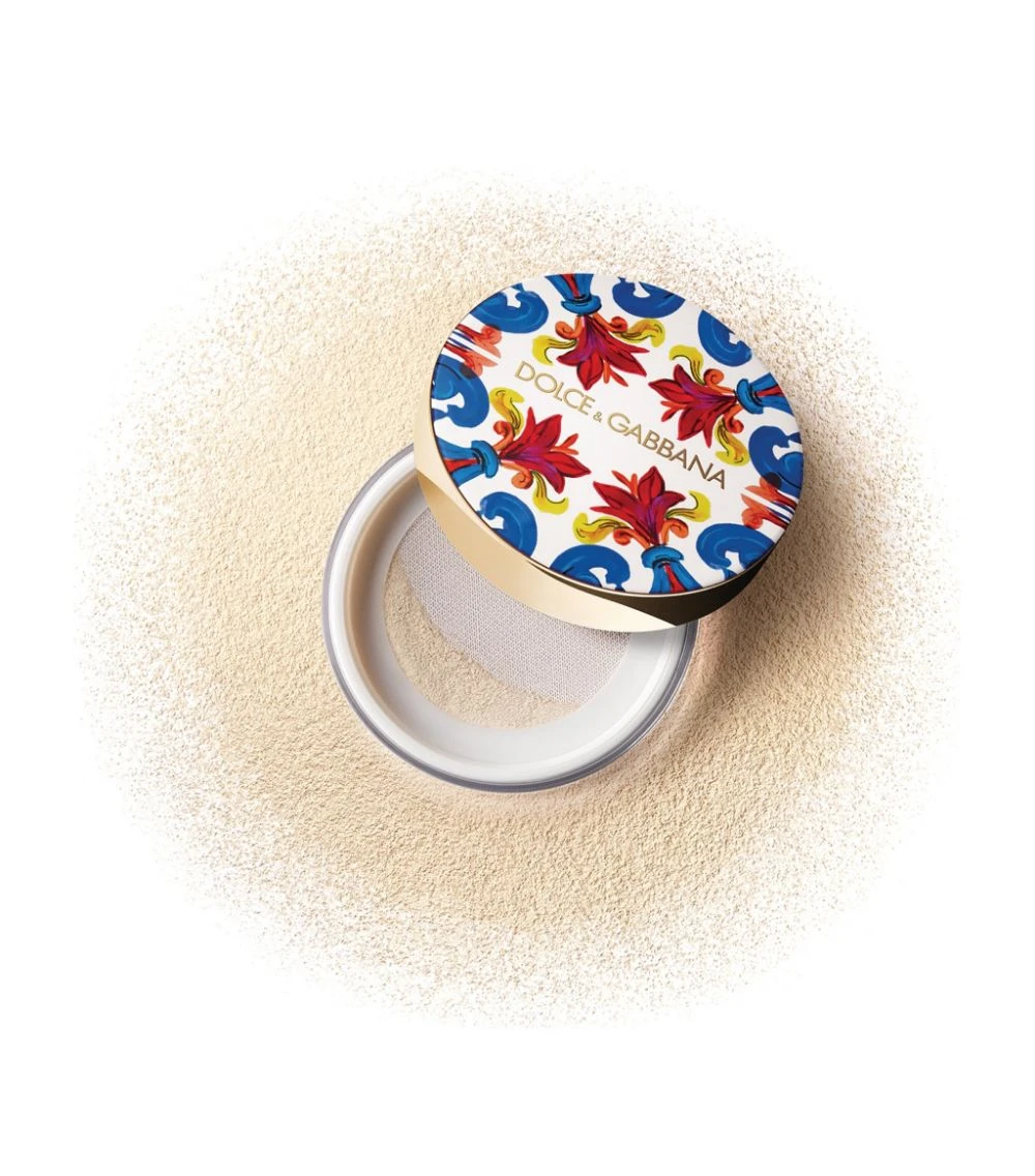 Dolce & Gabbanaβs Solar Glow Translucent Loose Setting Powder blurs imperfections and smooths the complexion for an enviable look that lasts all day long. The innovative powder puff ensures mistake-proof application for a flawless finish, while the unique Solar Glow scent β an exquisite elixir of orange blossom, juicy mandarin, jasmine petals, frangipani flower and vanilla orchid β transports you to stunning tropical lands.