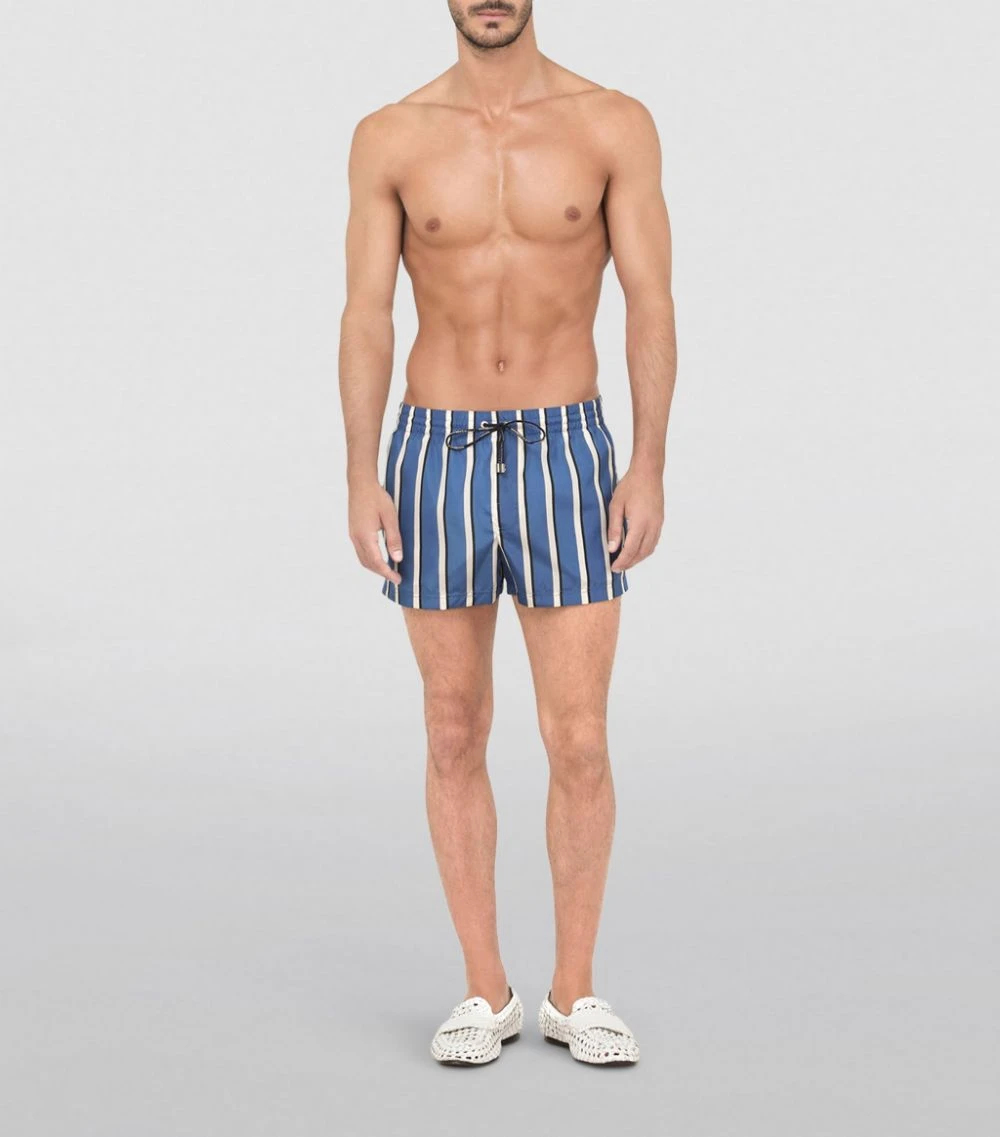 Understated and sophisticated, these Dolce & Gabbana swim shorts are crafted for comfort and function, while simple two-tone stripes ensure they’re appropriate for the holiday season. Crafted from lightweight materials, this pair secures with a drawstring fastening and comes with a matching drawstring bag for carrying in an organised fashion.