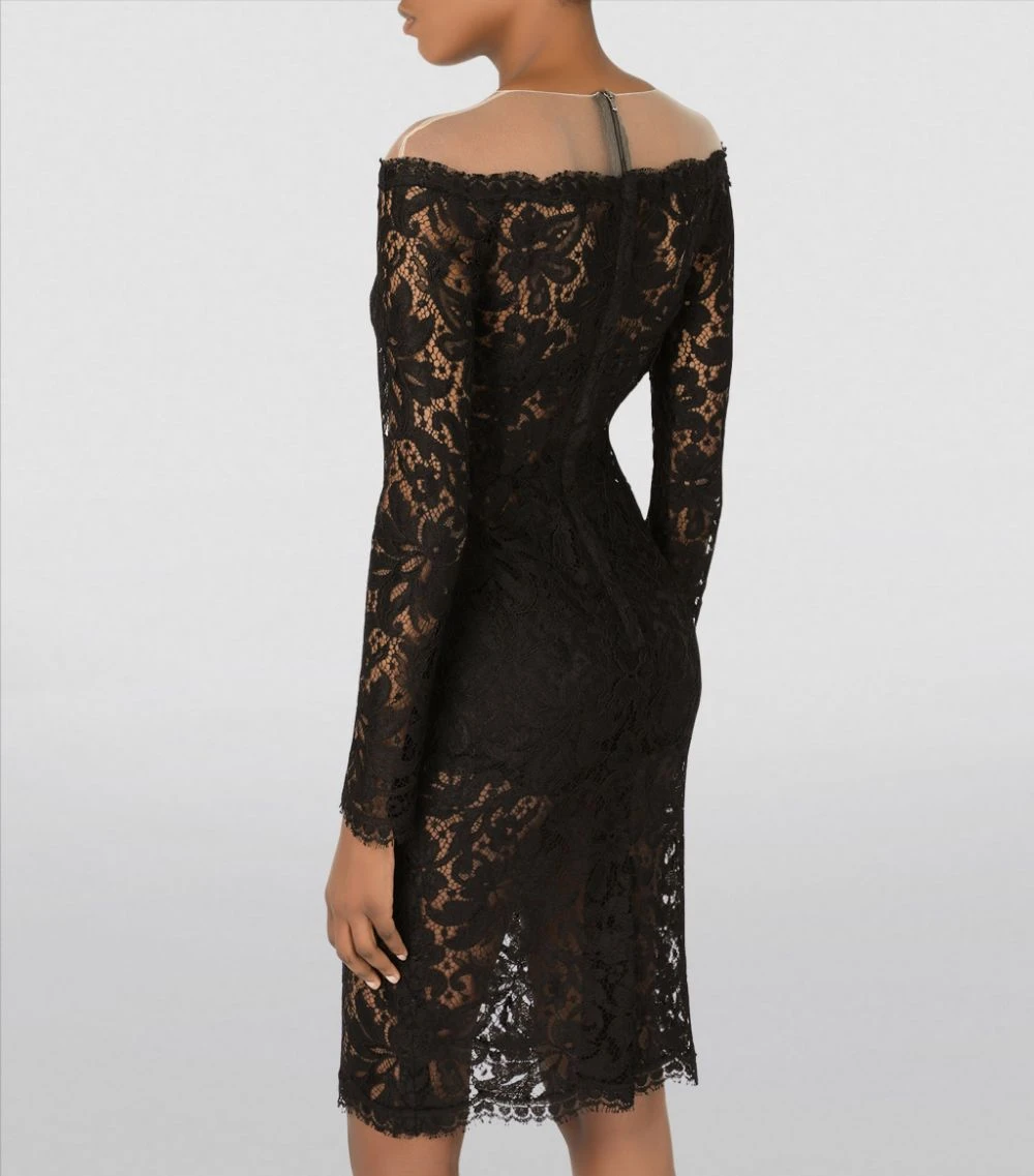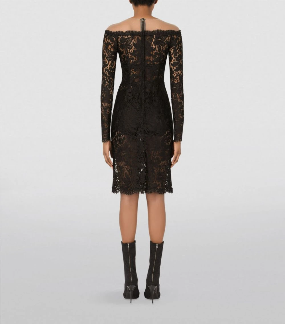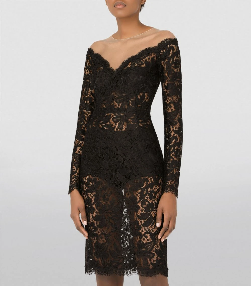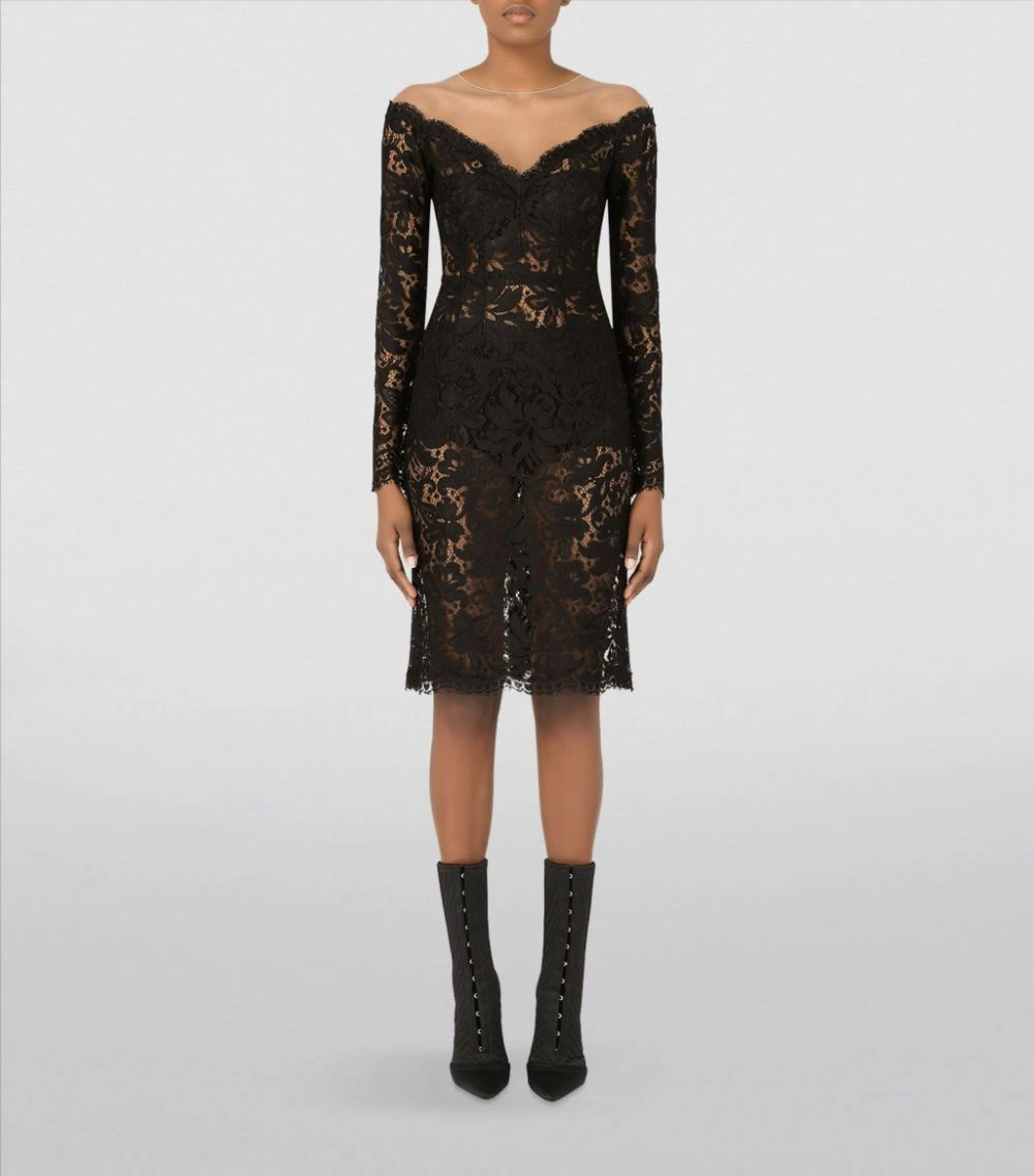 Dolce & Gabana has always placed elegance and sensuality at the forefront of its designs. These two elements are on full display in this intricately laced midi dress with a sweetheart neckline that wonderfully frames the décolletage area. Complete your look with one of the brand’s classic cross-body bags.