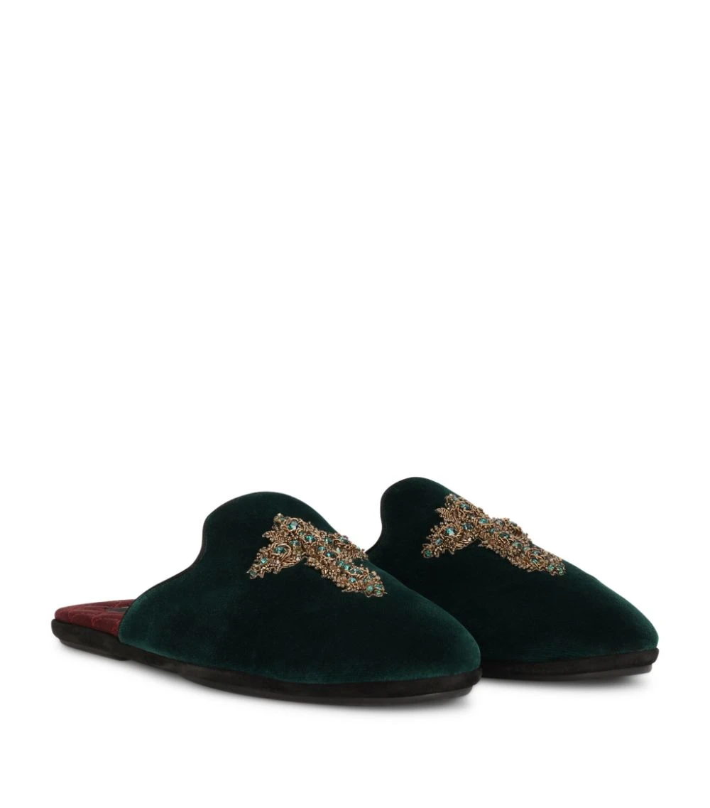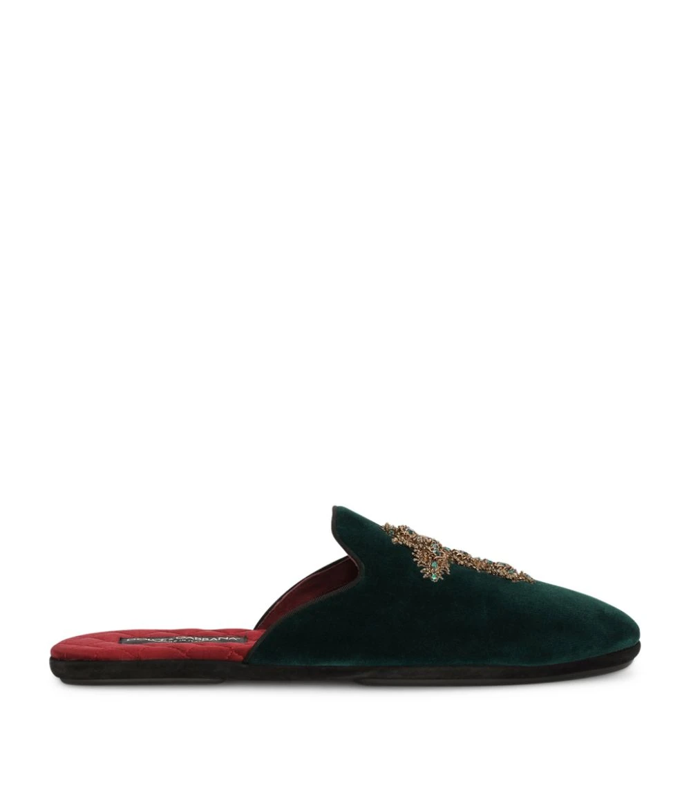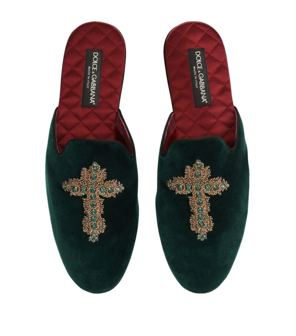 Slip into a regal role with Dolce & Gabbana’s velvet slippers. Opulently embroidered with gold-tone cross detailing to the upper and lined with quilted satin, the Italian-crafted pair embodies refined luxury and elegance – key themes that run through the Sartoria Eccentrica or ‘Eccentric tailoring’ collection from which they hail.