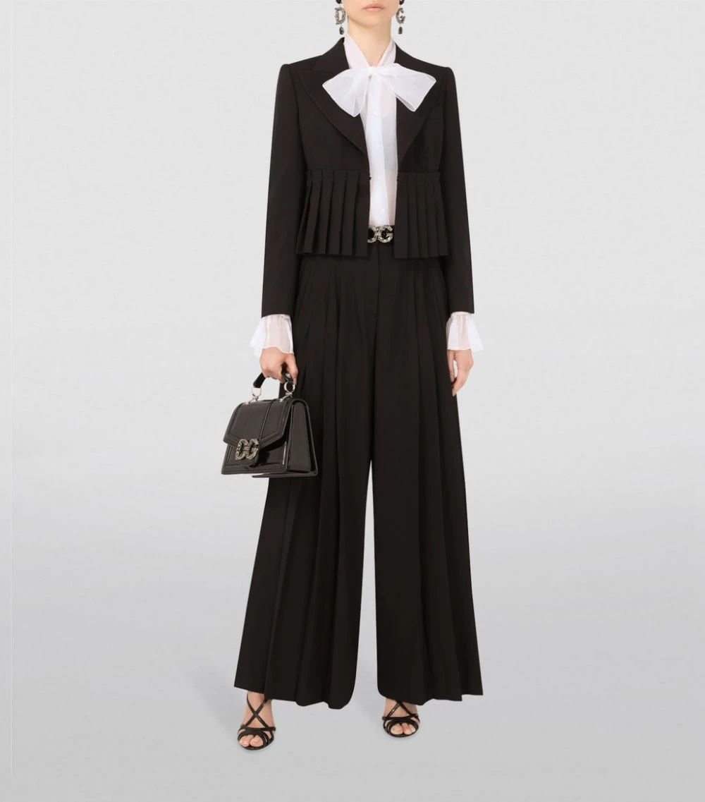 Harnessing a powerful sense of femininity is something that Dolce & Gabbana does best, thanks to silhouettes such as these wide-leg trousers. Equipped with a hidden fan of pleats falling from the waistband, the virgin wool pair references vintage tailoring while still lending itself easily to contemporary outfit pairings thanks to the wear-anywhere hue.