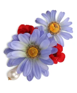 Dolce & Gabbana Fabric Flower Drop Clip-On Earrings 87579-MULTICOLOURED